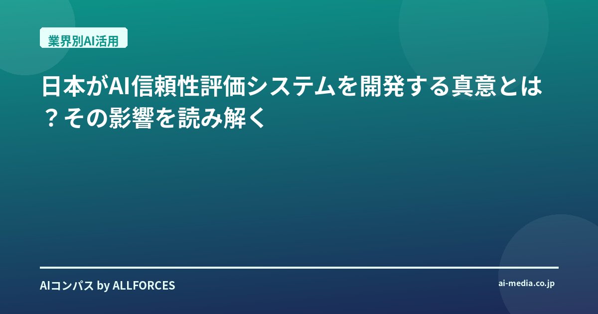 あなたなら、この日本の挑戦をどう評価しますか?そして、あなたのビジネスや技術開発において、この「AI信頼性」という概念をどう取り入れていきますか?