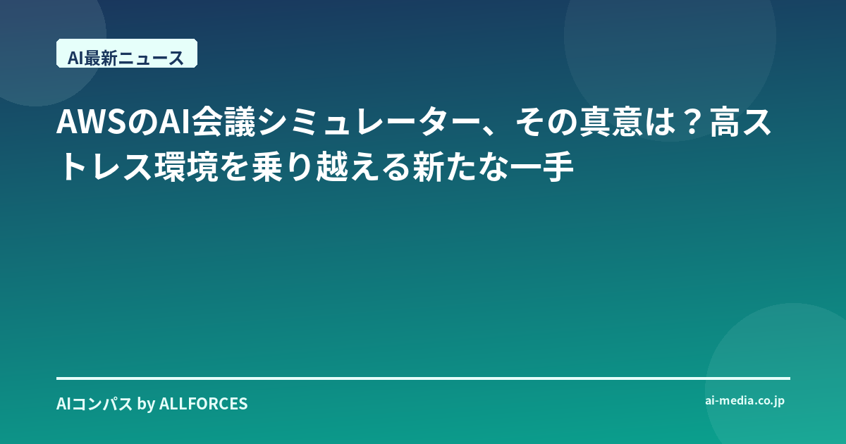AWSのAI会議シミュレーター、その真意は?高ストレス環境を乗り越える新たな一手
