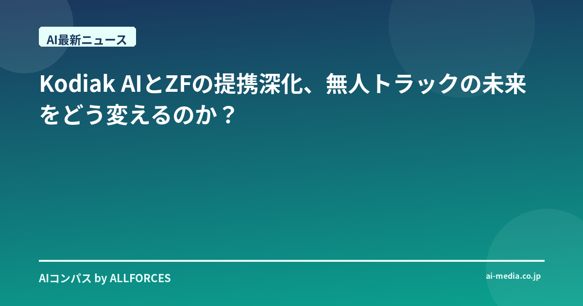 正直なところ、Kodiak AIとZFが手を組んで無人トラック開発を加速させるというニュースを聞いた時、またか、というのが最初の印象でした。あなたも感じているかもしれませんが、この業界、提携話は枚挙にいとまがありませんからね。でも、ちょっと待ってください。今回は、ただの提携話で終わらない、その真意を探る価値があると感じています。この動きが、私たちの見ている物流の未来を、そしてAI技術の社会実装のあり方を、根本から変える可能性を秘めているとしたら、どうでしょう? 私がこのAI業界に足を踏み入れて20年。シリコンバレーのガレージから生まれたスタートアップが、あっという間にユニコーンになる様も、日本の大企業が鳴り物入りでAI導入を宣言し、その裏で泥臭い試行錯誤を繰り返す姿も、数えきれないほど見てきました。特に自動運転、それもトラックという分野は、技術的なハードルの高さと、社会インフラへの影響の大きさから、常に注目を集めてきました。かつては「夢物語」と揶揄された無人トラックが、今や現実の物流を支えようとしている。この進化のスピードには、本当に驚かされます。
