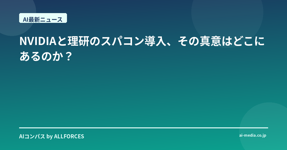 私がこの業界に身を置いて20年、シリコンバレーのガレージから生まれたスタートアップが世界を変える瞬間も、日本の大企業がAI導入に四苦八苦する姿も、数えきれないほど見てきました。その経験から言えるのは、こういう大規模なインフラ投資というのは、単に「最新のものを入れた」という話では終わらない、ということです。特に理研のような日本の科学技術の最前線を担う機関が、NVIDIAという世界のトップランナーと組む。これは、日本のAI戦略、ひいては科学・産業・技術におけるリーダーシップをどこへ持っていこうとしているのか、その強い意志の表れだと感じています。