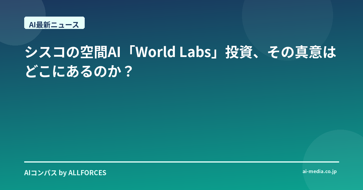 シスコの空間AI「World Labs」投資、その真意はどこにあるのか? いやはや、最近のAI業界の動きは本当に目まぐるしいですね。皆さんも感じているかもしれませんが、ちょっと目を離すと新しい波が次々と押し寄せてくる。そんな中で、今回シスコが空間AIのスタートアップ、World Labsに戦略的投資を行ったというニュースは、正直なところ、最初に聞いた時「おや?」と思ったんですよ。シスコといえば、ネットワークインフラの巨人。その彼らが、具体的に「空間AI」という、一見すると少し畑違いにも見える領域に踏み込んだ真意はどこにあるのか、これは深掘りする価値があると感じましたね。 私自身、この20年間、シリコンバレーのガレージから始まったスタートアップがユニコーンになり、また日本の大企業がAI導入に四苦八苦する姿を間近で見てきました。たくさんの技術が「次の波だ」ともてはやされ、そして静かに消えていくのも見てきました。だからこそ、新しい技術への投資には常に慎重な目を向けてしまうんですが、今回のシスコの動きは、ただのトレンド追随とは違う、何か深い戦略が隠されているように思えるんです。 World Labs、この社名を聞いてピンとくる人もいるかもしれませんね。あのコンピュータービジョンのパイオニアであり、「AIのゴッドマザー」とも称されるフェイフェイ・リー博士が共同設立したスタートアップです。彼女の研究室から生まれるイノベーションは、常に世界中の注目を集めてきました。World Labsが目指すのは、「大規模世界モデル(Large World Models: LWMs)」の開発。これは、AIシステムが3Dで物理世界を認識し、理解し、そして操作できるようにするための基盤となるAIモデルです。正直なところ、この概念を聞いた時、少しSFめいた響きを感じました。AIが現実世界を「見る」だけでなく、「理解し」、「触れる」ようになる。これは、単なる画像認識の延長線上にはない、まさにパラダイムシフトを予感させる技術ですよね。彼らは、仮想環境と現実環境の間のギャップを埋めることで、ゲームやロボット工学といった産業を根底から変革する可能性を秘めていると言われています。 では、なぜシスコがここに投資したのか。彼らは、今回の投資がWorld Labsにとってこれまでで最大の戦略的資金調達だと強調しています。財務条件は明らかにされていませんが、金額以上の意味があるのは間違いありません。シスコは、自らを「AI時代における重要なインフラプロバイダー」と位置付けています。つまり、どんな革新的なAI技術が登場しようとも、それを動かすためのネットワーク、データセンター、セキュリティ、そしてクラウドのインフラが不可欠だということを、彼らは誰よりも理解している。このWorld Labsへの投資は、単に有望なスタートアップを支援するだけでなく、AIランドスケープ全体におけるシスコの広範なイノベーション戦略の一環なんです。これには、もちろん研究開発、M&A、そして戦略的パートナーシップが含まれます。皆さんもご存知かもしれませんが、シスコはすでに10億ドルのグローバルAI投資ファンドを設立し、生成AIの分野で注目されるCohere、Mistral AI、そしてデータアノテーションと品質保証の雄であるScale AIといった企業にも投資を行っています。これは、AIの「頭脳」となるモデル開発から、「目」となるデータ処理、そして「手足」となる物理世界とのインタラクションまで、AIエコシステム全体を俯瞰した投資戦略が見て取れます。 投資家や技術者の皆さんは、この動きをどう捉えるべきでしょうか。まず投資家の方々へ。シスコのようなインフラの巨人が、特定のアプリケーション層に近い技術、それも空間AIという新領域に投資するというのは、単なる短期的なリターンを狙ったものではないと考えるべきです。彼らは、将来的に自社のインフラが不可欠となるような、次世代のAIアプリケーションの「萌芽」を探している。LWMsがゲームやロボット工学で実用化されれば、そこには膨大なデータ処理とリアルタイムなネットワーク接続が求められるのは自明の理です。シスコはその未来を見据え、今からその「苗」を育て、来るべき市場拡大に備えていると言えるでしょう。 一方、技術者の皆さん、特にAIの研究開発に携わる方々には、World Labsが目指す「LWMs」の概念に注目してほしいですね。これは、今後のAIの進化を考える上で非常に重要なキーワードになるはずです。AIが現実世界をより深く理解し、インタラクションできるようになるということは、私たちがこれまで想像もしなかったような新しいアプリケーションやサービスが生まれる可能性を秘めています。例えば、産業用ロボットのより高度な自律性、AR/VRデバイスを通じた現実世界と仮想世界のシームレスな融合、あるいはスマートシティにおける空間データの活用など、応用範囲は計り知れません。 もちろん、大規模世界モデルの実現には、技術的な課題も山積しているでしょう。膨大