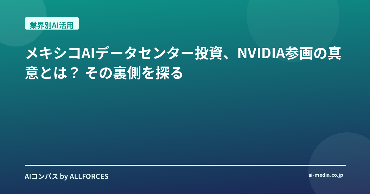 メキシコAIデータセンター投資、NVIDIA参画の真意とは? その裏側を探る