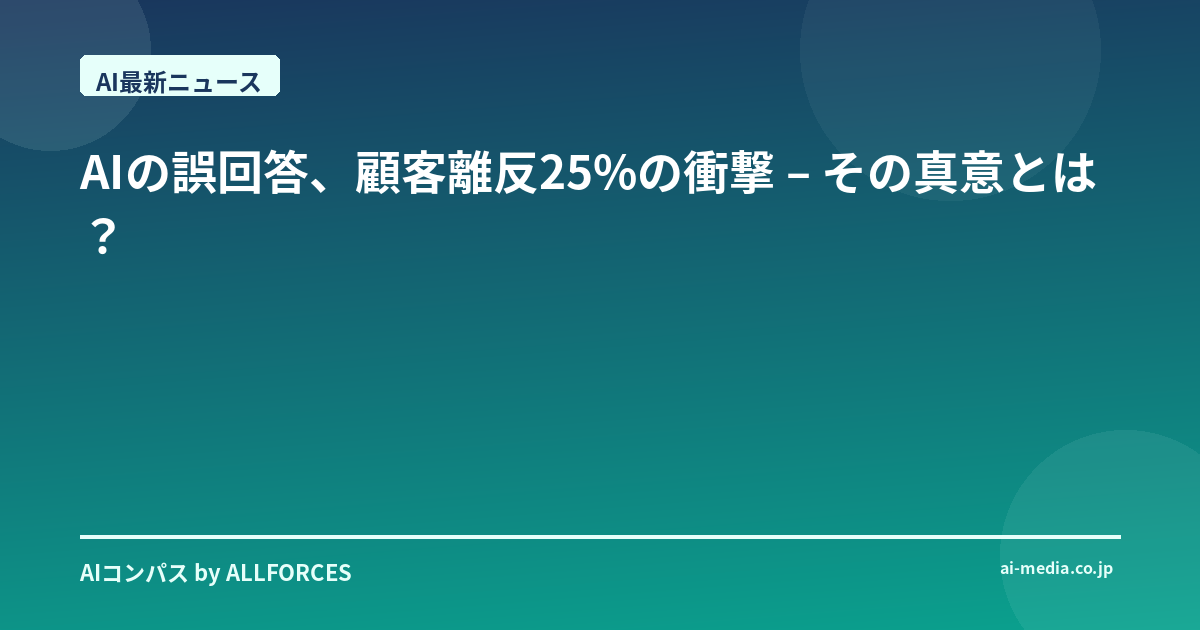 AIの誤回答、顧客離反25%の衝撃 – その真意とは? あなたも感じているかもしれませんが、最近、AIが顧客対応の最前線に立つ場面が増えましたよね。僕もこの20年間、シリコンバレーから日本の大企業まで、数百社のAI導入を見てきましたが、ここに来てまた新しい波が来ているのを感じます。しかし、今回の「AI誤回答で顧客25%が離脱」という調査結果は、正直なところ、僕にとっても少なからず衝撃でした。これは単なる数字以上の、もっと深い意味を持っていると思うんです。 振り返れば、AIは常に期待と不安の間にありました。初期のチャットボットが「全然話が通じない」と揶揄された時代から、ChatGPTに代表される生成AIの驚異的な進化まで、技術は確かに驚くべきスピードで進歩してきました。でも、この「顧客離反25%」という数字は、僕たちがAIに対して抱いている漠然とした期待と、現実とのギャップを鮮やかに示しているように思います。これは、AIが企業にとって諸刃の剣になり得ることを改めて突きつけているわけです。 今回の調査、「消費者と企業のコミュニケーション実態調査2025-2026」によると、AIの誤回答に直面した顧客の4人に1人が、問題解決を諦めてサービスから離れてしまうという現実が浮き彫りになりました。さらに53%もの顧客が、AIで解決できないと判断した後に「有人窓口での解決」を試みているというのも見逃せません。これはつまり、顧客はAIに一定の期待を寄せつつも、最終的には「人間による確実な解決」を求めている証拠でしょう。 僕が特に注目しているのは、「人間性の破壊」という概念です。デュオリンゴやオーディブルといった先進的なサービスでさえ、AI機能の拡充が一部の長期利用者の解約につながっているという話を聞くと、AIの導入が単なる効率化だけでなく、顧客との「感情的なつながり」にまで影響を及ぼしていることが分かります。顧客は単に問題解決の道具としてAIを見ているわけではない。そこには「対話」や「共感」といった、より人間的な要素を無意識のうちに求めているのかもしれません。これは、AI開発者や導入企業が軽視してはならない、非常に重要な示唆だと考えています。 技術的な側面から見れば、この問題の根源の1つに「ハルシネーション」、つまり生成AIがもっともらしい嘘をつく現象があります。KDDIの研究チームも、このハルシネーションのリスクを軽減するためのアプローチを模索していると聞いていますが、現在の技術では完全にゼロにするのは非常に困難です。顧客対応で誤った情報を提供してしまえば、信頼はあっという間に失われます。Gartnerが「2027年までに生成AIに過度に依存した顧客対応を行う企業の80%が、効果が出ないだけでなく顧客離れを引き起こす」と予測しているのも、このハルシネーションや、感情的な対応の限界を見据えてのことでしょう。