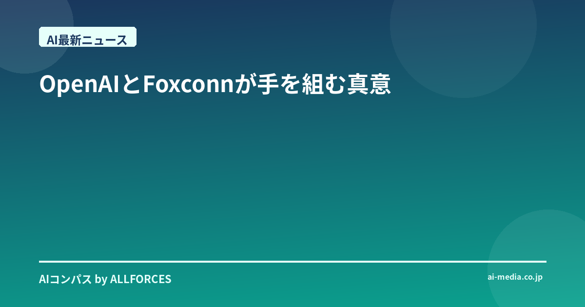 OpenAIとFoxconnが手を組む真意:AIハードウェアの地政学が変革するのか? あなたも感じているかもしれませんが、最近のAI業界の動きは本当に目まぐるしいですよね。特にOpenAIとFoxconnの提携というニュースは、私の長年のAI業界ウォッチャーとしての経験から見ても、ちょっとした驚きと同時に、深い戦略的意図を感じさせるものでした。単なる技術提携にとどまらない、もっと大きな波が押し寄せているのかもしれません。 正直なところ、最初にこの話を聞いた時、私は少し懐疑的でした。「また新たな提携か」と。AIの世界では、日夜新しいパートナーシップが生まれては消えていく。しかし、Foxconnというハードウェアの巨人と、OpenAIというAIモデル開発の最前線を走る企業が手を組む。これは、ただならぬことだとすぐにピンときたんです。なぜなら、彼らが狙っているのは、単なる部品の供給元と顧客の関係を超えた、次世代AIインフラの「共同設計」と「米国での製造強化」という、まさに業界の根幹を揺るがす動きだからです。 考えてみてください。過去20年間、私はシリコンバレーのガレージで生まれたスタートアップから、日本の大手企業がAIを導入するまでの過程を数多く見てきました。その中で、常にボトルネックになってきたのが、高性能なAIモデルを動かすための「物理的なインフラ」の確保でした。特に大規模言語モデル(LLM)のような先端AIでは、NVIDIAのGPUをはじめとする膨大な演算リソース、それを支えるデータセンター、そして効率的な冷却システムや電力供給が不可欠です。しかし、これらのハードウェアの多くは特定の地域に生産が集中しており、サプライチェーンのリスクは常に影を潜めていました。 このサプライチェーンのリスク、あなたも肌で感じているかもしれませんね。数年前のパンデミックでは、半導体不足が自動車産業をはじめとする様々な分野に甚大な影響を与えました。特定の国や地域に生産が集中しているというのは、平時であれば効率的かもしれませんが、ひとたび地政学的な緊張が高まったり、自然災害や疫病といった予期せぬ事態が発生したりすれば、一瞬にして供給網が寸断されかねない危うさを孕んでいます。AIが社会の基盤となりつつある今、その「脳」となる演算リソースの供給が不安定になることは、国家レベルでの安全保障問題に直結する、極めて深刻な課題なんです。 OpenAIがFoxconnと組んで米国での製造強化を目指すのは、まさにこの「ボトルネック」と「リスク」を同時に解消しようとする、極めて戦略的な一手だと私は見ています。彼らは単に既存の部品を調達するだけでなく、自分たちが求める次世代のAIモデルに最適化されたハードウェアを、自らの手で、しかも信頼できる場所で作り上げようとしている。これは、これまでのAI産業の常識を覆すような、垂直統合への大きな一歩と言えるでしょう。 ### AIハードウェアの「共同設計」がもたらす革命 では、この「共同設計」が具体的にどのようなインパクトをもたらすのでしょうか? 従来のハードウェア開発は、汎用性を重視する傾向がありました。様々な顧客に対応できるよう、ある程度の柔軟性を持たせた設計が主流だったわけです。しかし、OpenAIのような最先端のAI開発企業は、特定の目的、特定のモデルアーキテクチャに特化した、究極の性能を引き出すハードウェアを求めています。 考えてみてください。まるでF1レーシングカーの設計士が、エンジンの特性に合わせてシャシーや空力パーツをミリ単位で調整するように、OpenAIは自社のAIモデルが持つ演算特性、メモリ使用パターン、通信要件などをFoxconnに直接フィードバックし、それに基づいてGPU間の接続方法、メモリの種類と配置、冷却システムの流路、さらにはデータセンター全体の電力供給設計に至るまで、全てを最適化しようとしているのです。これは、ソフトウェアとハードウェアが文字通り「共進化(Co-evolution)」していくことを意味します。このアプローチによって、既存の汎用ハードウェアでは実現できなかったレベルのパフォーマンス向上、エネルギー効率の改善、そして何よりも、「新たなAIフロンティアの開拓」が可能になるんです。 考えてみてください。現在のAIモデル開発は、既存のハードウェア性能という制約の中で行われています。しかし、もしハードウェアがモデルの要求に合わせて最適化され、まるでカスタムメイドのスーツのようにフィットするなら、AI研究者たちはこれまで想像すらできなかったような、より大規模で複雑な、あるいは全く新しいタイプのAIモデルを設計できるようになるでしょう。例えば、リアルタイムでの超高精度なマルチモーダル推論、物理世界とのインタラクションを極限まで高めたロボティクスAI、あるいはエネルギー消費を劇的に抑えながら膨大なデータを処理するエッジAIなど、その可能性は無限に広がります。これは、単なる性能向上以上の、AIのあり方そのものを変革する可能