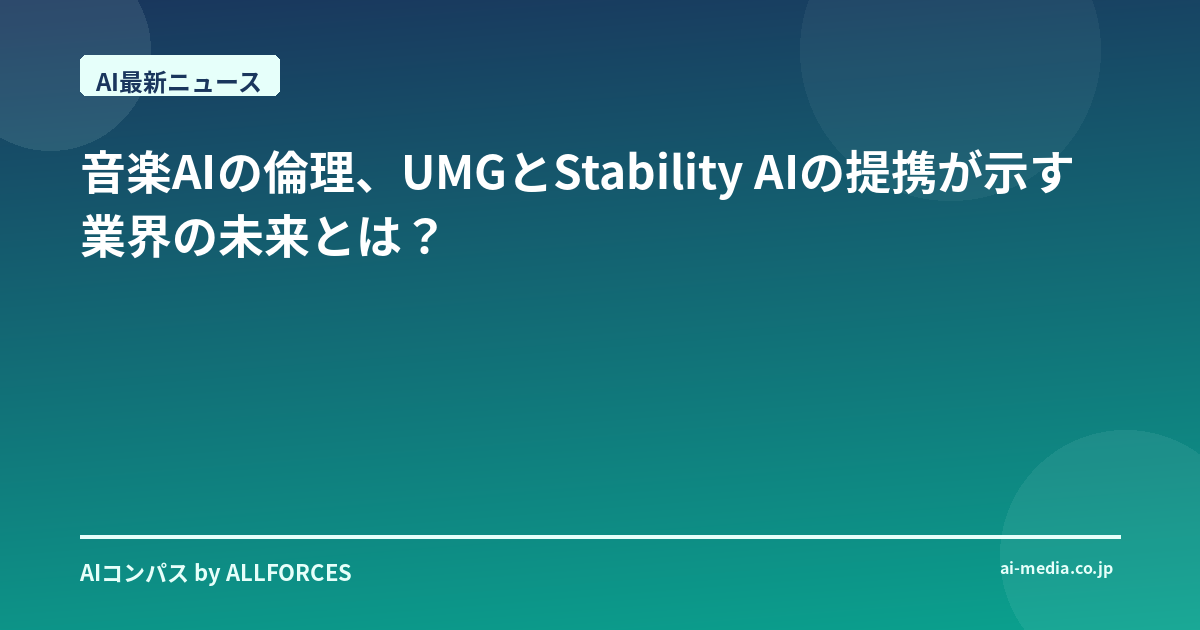 音楽AIの倫理、UMGとStability AIの提携が示す業界の未来とは? 正直なところ、最初にこのニュースを聞いた時、「また大手レコード会社がAIと組むのか」と、少しばかり懐疑的に耳を傾けましたよ。あなたもそう感じたかもしれませんね?しかし、Universal Music Group(UMG)とStability AIの提携、その真意を深く掘り下げてみれば、これは単なるコラボレーション以上の、音楽業界の未来を大きく左右するであろう戦略的な一手だと気付かされます。2025年10月30日に発表されたこのパートナーシップは、単に最新技術を取り入れるだけでなく、「倫理的な音楽AI」という、これまで漠然としていた概念に具体的な形を与えようとしている点で、非常に画期的な動きだと私は見ています。 私がこの業界で20年間、シリコンバレーのガレージから日本の巨大企業まで、何百ものAI導入を目の当たりにしてきた経験から言わせてもらうと、新しい技術が既存の業界に破壊的な変化をもたらす時、最も重要なのは、その「ルール作り」に誰が、どのように関わるか、なんです。音楽業界と生成AIの関係は、これまで著作権侵害や補償の問題で常に緊張を孕んでいました。MidjourneyやChatGPT、あるいはUdemyなどのAIツールが急速に普及する中で、クリエイターの権利が軽視されるのではないかという懸念は、常に付きまとっていたわけです。UMGが音楽AIスタートアップのUdiyoと和解・ライセンス契約を結んだことも記憶に新しいですが、これは彼らがAI技術そのものを敵視しているわけではなく、その利用方法に明確な「線引き」を求めていることの証左でしょう。 今回のUMGとStability AIの提携の核心は、「責任を持って訓練された生成AI」の開発にあります。Stability AIといえば、Stable Diffusionで知られる生成AIのリーディングカンパニー。彼らの音楽生成AIであるStable Audioが、完全にライセンスされたデータのみで構築されているという事実は、この提携の基盤がいかに強固であるかを示しています。両社は、アーティスト、プロデューサー、ソングライターの創造プロセスを支援する「次世代のプロフェッショナル音楽制作ツール」を目指していると言います。これはAIがクリエイティビティを「置き換える」のではなく、「拡張する」パートナーとなる、という明確なメッセージだと受け取れます。アーティストが開発プロセスに直接参加し、フィードバックを反映させる「アーティスト・セントリックなアプローチ」が強調されている点も注目に値しますね。これは、単なる技術提供に終わらず、現場のニーズを深く理解し、真に価値のあるツールを共創しようとする姿勢の表れでしょう。 投資家やテクノロジーに携わる皆さんは、この動きをどう捉えるべきでしょうか。まず、この提携は「合法性」と「倫理性」を兼ね備えたAI音楽市場が、いよいよ本格的に動き出す兆候と見て良いでしょう。これまで著作権問題に足枷をつけられていた生成AIの音楽分野が、UMGのような業界の巨人と手を組むことで、一気に商業的な展開を加速させる可能性を秘めています。Stability AIがWarner Music Group(WMG)とも同様のパートナーシップを結んでいることを考えると、主要な音楽レーベルがこぞって「倫理的AI」の旗印の下に集結しつつある、と見てもいいかもしれません。これは、AI開発企業にとっては、単に優れたモデルを作るだけでなく、どのようにして著作権を尊重し、クリエイターコミュニティと共生していくか、という「社会的な受容性」が事業成功の鍵を握る時代に入ったことを意味します。投資の視点から見れば、ライセンスデータを基盤とし、明確な収益分配モデルを持つAI音楽プラットフォームやツールへの注目が高まるでしょう。また、技術者にとっては、透明性の高いデータセットの構築、フェアなアルゴリズムの開発、そしてクリエイターとの協働を前提としたUI/UX設計が、これまで以上に重要になってくるはずです。 この提携が示すのは、AIが人間の創造性を奪うものではなく、むしろ新たな表現の可能性を広げ、そしてその過程で適切な対価が支払われるべきだという、音楽業界からの強い意思表示だと私は解釈しています。もちろん、すべてが順風満帆に進むとは限りません。技術の進化は予測不能ですし、どんなに周到な計画も予期せぬ課題に直面することは、過去20年の経験が教えてくれています。しかし、UMGのような影響力のある企業が、この分野で「倫理」を前面に押し出していることは、今後のAIとクリエイティブ産業の関係を築く上で、非常に重要な一歩となるでしょう。あなたはこの動きが、音楽だけでなく、他のクリエイティブ産業におけるAIのあり方に、どのような影響を与えると想像しますか?そして、私たち自身が、この新しい技術とどう向き合っていくべきか、改めて考える良い機会なのではないでしょうか。 個人的には、このUMGとStability AIの提携は、音楽業界という特定の枠を超え、クリエイティブ産業全体に波及する「倫理的AI」のス