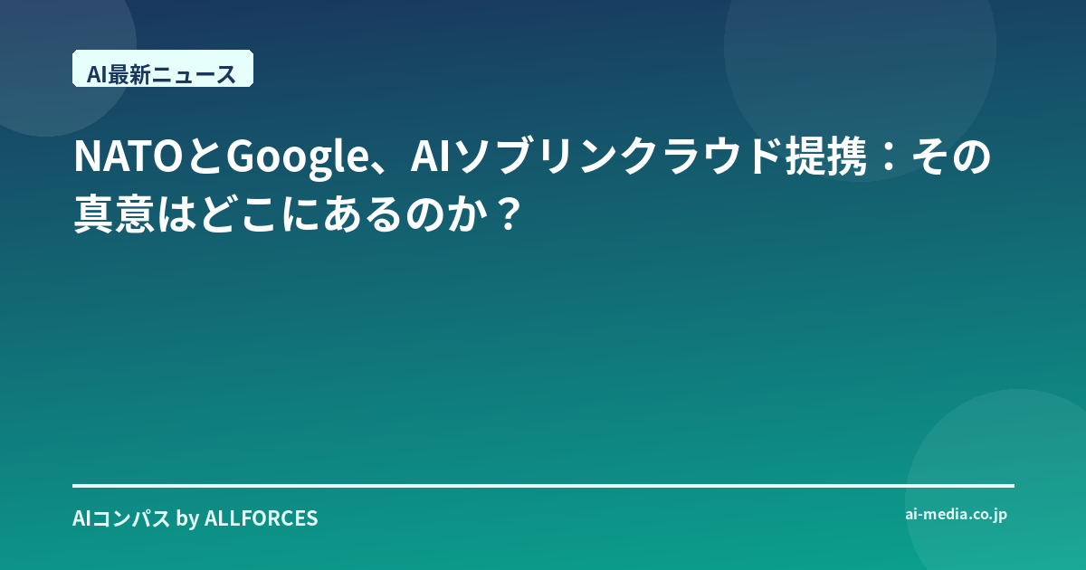 今回のNATOとGoogle Cloudの提携は、AIが私たちの社会、そして国際秩序に与える影響の大きさを改めて示唆しています。技術は常に進化し、その使われ方もまた多様化する。私たちは、その変化の波の最前線にいるわけです。