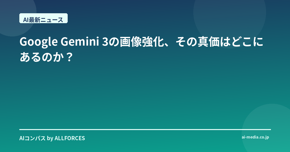 いやはや、皆さん、また来ましたね、Googleが。先日のGemini 3発表、皆さんもニュースでご覧になったんじゃないでしょうか?正直なところ、私も「また新しいバージョンか」と最初は少しばかり構えていました。この20年間、AI業界の浮き沈みを間近で見てきた身としては、毎度毎度「革新」という言葉が踊る度に、どこまでが真実で、どこからが期待値先行なのか、つい眉に唾をつけて見てしまう性分なんです。でもね、今回の「画像強化」という話には、ちょっとだけ、いや、かなり心を揺さぶられましたよ。あなたも、画像生成AIの進化には目を見張るものがあると感じているかもしれませんが、Gemini 3が提示する未来は、私たちがこれまで見てきたものとは一線を画するかもしれません。