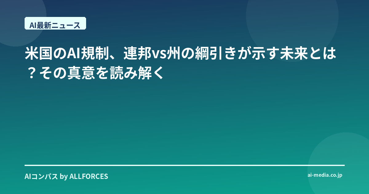 米国のAI規制、連邦vs州の綱引きが示す未来とは?その真意を読み解く