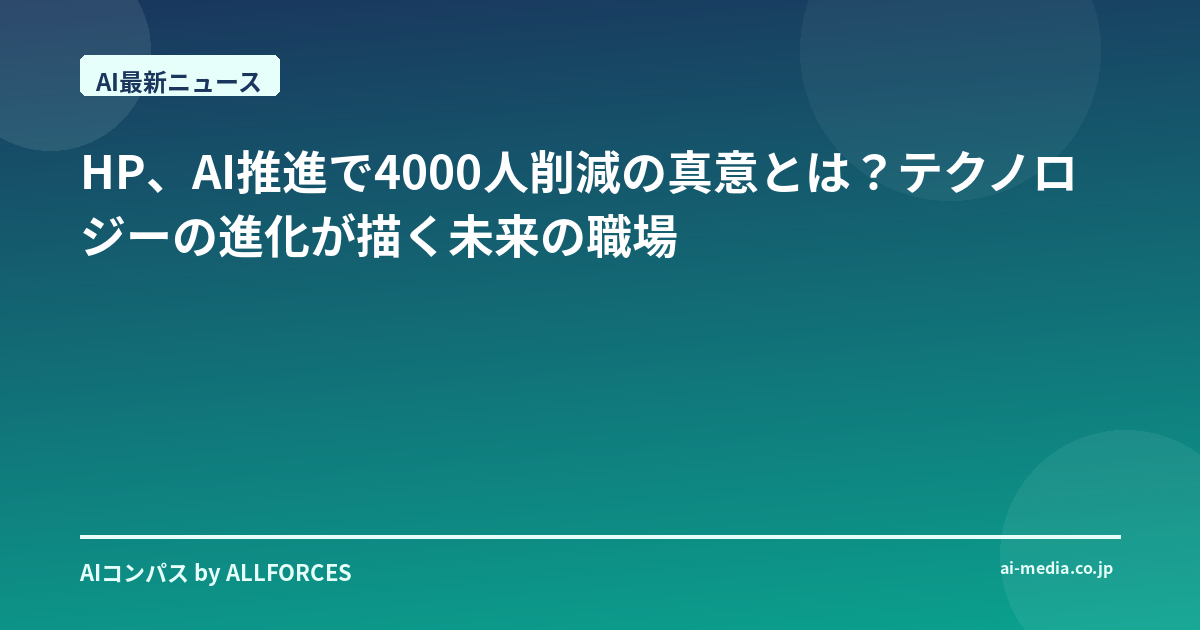 皆さんも、自分のスキルセットをAIの時代に合わせてどう進化させていくか、今一度真剣に考えてみる良い機会ではないでしょうか?HPの動きは、私たち全員にとって、未来の働き方について深く考えるきっかけを与えてくれています。