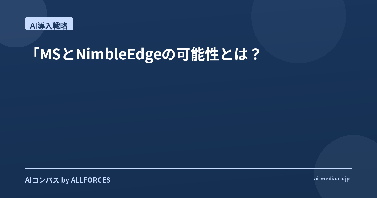 今回のMSとNimbleEdgeの協業は、単なる技術提携以上の意味を持つように思えます。それは、AIが私たちの日常生活により深く、そしてよりパーソナルに浸透していくための、新たな一歩です。クラウドAIが「中央集権的」な進化を遂げたとするならば、オンデバイスAIは、より「分散的」で「個に最適化された」未来を提示しているのかもしれません。あなたはこの動きを、AIのどのような未来へと繋がっていくと感じますか?