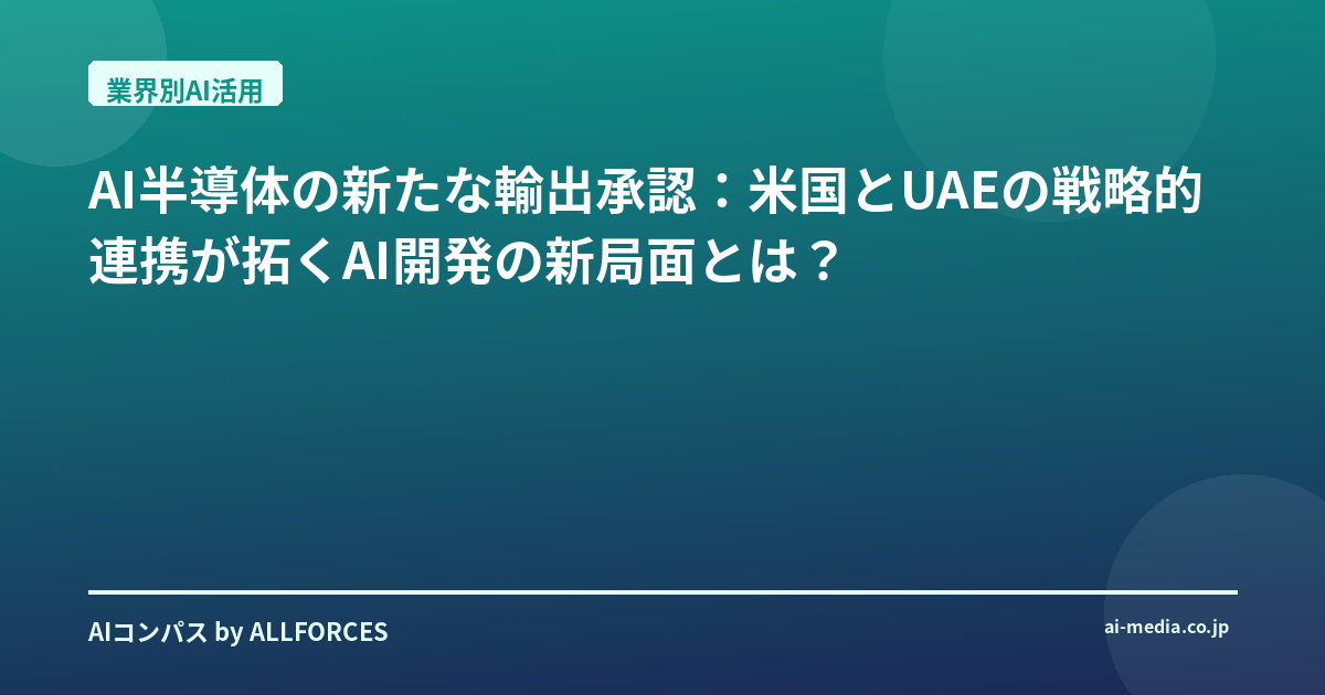 AI半導体の新たな輸出承認:米国とUAEの戦略的連携が拓くAI開発の新局面とは? 正直なところ、このニュースを最初に聞いた時、「また来たか」という感覚と、「今回は一味違うぞ」という期待が入り混じったんだ。米国がUAEへのAI半導体輸出を承認したという話、あなたも同じように感じているんじゃないかな?20年間、シリコンバレーのスタートアップから日本の大企業まで、数多くのAI導入を間近で見てきた私にとって、これは単なるチップ輸出の承認以上の意味を持つ。過去にも似たような動きはあったけれど、今回の背景と条件は、AI業界の未来を大きく左右する可能性を秘めているんだ。 思い出してみてほしい。かつては最先端技術の輸出、特にデュアルユース(軍民両用)の可能性を秘めるものは、厳格な規制の対象だった。特に中国への技術流出懸念が高まる中、中東地域への輸出もかなり慎重な姿勢だったはずだ。それが今回、UAEのAI企業G42、そしてサウジアラビアのHumainへの輸出が承認された。しかもその中には、Nvidiaの最新鋭Blackwellチップ、具体的にはGB300プロセッサに匹敵する最大35,000個もの先進AIチップが含まれるというから驚きだ。総額10億ドル規模という数字も、その本気度を物語っている。これは単なるビジネスディールではなく、地政学的、技術的な大転換期を象徴していると私は見ている。 今回の核心は、米国商務省産業安全保障局(BIS)が課した「厳格なセキュリティと報告要件」だろう。G42がかつて中国の通信機器大手Huaweiとの提携を解消した経緯も踏まえ、技術の「外国敵対国」への転用を防ぐための明確な線引きがなされている。これは、米国がただ技術を売るのではなく、信頼できるパートナーとのエコシステムを構築しようとしている表れだ。G42が「Regulated Technology Environment (RTE)」というセキュリティ・コンプライアンスフレームワークを導入し、米国規制に沿ってAIインフラを開発している唯一の地域国家であるという点も非常に重要だ。これは単なる市場拡大ではなく、安全保障と技術主導権の維持という2つの目的を両立させようとする米国の巧みな戦略だと言える。 では、この動きがAI業界にどんな影響を与えるだろうか? まず、UAEが中東地域におけるAIハブとしての地位を確固たるものにするのは間違いないだろう。G42がNvidia、Oracle、Cisco、SoftBank Groupと提携し、OpenAIのために1ギガワット級(最終的には5ギガワットに拡大予定)の「Stargate UAE」というAI計算クラスターをアブダビに建設する計画は、まさにその象徴だ。これは米国以外では最大級のAIキャンパスとなる見込みで、まさにAI開発の新たな巨人が誕生する瞬間を見ているのかもしれない。MicrosoftもG42と15億ドルのパートナーシップを結び、独自のチップ輸出ライセンスを確保していると聞けば、この動きがいかに広範なものかがわかるだろう。AMD、Qualcomm、Cerebrasといった他の大手チップメーカーとの連携も進んでいるとされ、まさに世界のAI技術がUAEに集結しつつある状況だ。 投資家の皆さんは、この動きをどう捉えるべきか? 1つは、中東地域、特にUAEがAIインフラ投資の新たなフロンティアとなることだ。UAEは今後10年間でAIインフラ、半導体、エネルギー、製造業に1.4兆ドルもの投資を米国に約束しており、これは双方向の恩恵を生む可能性が高い。米国の技術力とUAEの潤沢な資金が結びつくことで、これまで想像しえなかったような大規模プロジェクトが次々と立ち上がるだろう。AI関連株を考える上では、単に技術力だけでなく、国際的なパートナーシップ戦略にも注目する必要がある。技術者は、G42のような企業が提供する最先端のAI開発環境、特に大規模言語モデル(LLM)のトレーニングや推論に特化した環境が、新たなブレイクスルーを生み出す可能性を秘めていることを知っておくべきだ。
