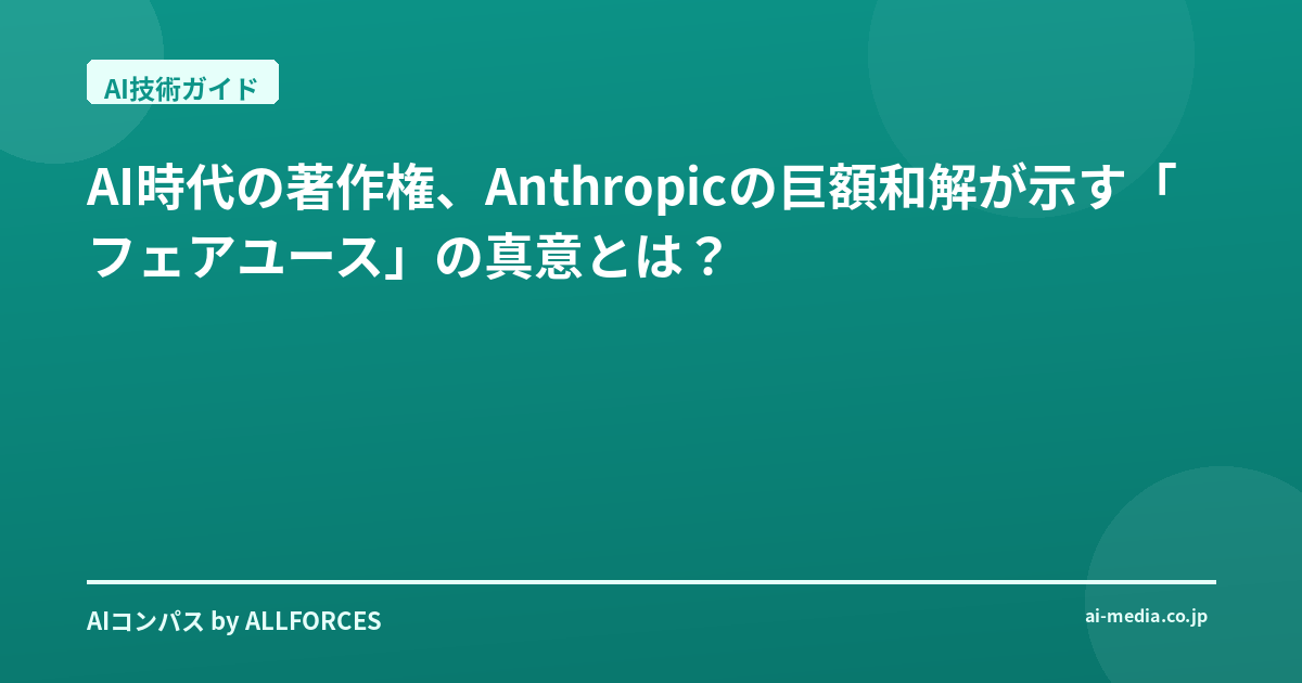 AI時代の著作権、Anthropicの巨額和解が示す「フェアユース」の真意とは? Anthropicが著作権訴訟で15億ドルという巨額の和解に応じたというニュース、あなたも驚かれたかもしれませんね。正直なところ、私も最初に聞いた時は「ついに来たか」という思いと、「まさかここまでとは」という2つの感情が入り混じりました。これは単なる金銭的な和解にとどまらず、AI開発の未来、特に大規模言語モデル(LLM)のトレーニングデータに関する新たな規範を示す、極めて重要な出来事だと感じています。この動きが、これからのAI業界にどのような波紋を広げるのか、一緒に深く掘り下げていきましょうか。 私が20年間このAI業界を見続けてきて、常に感じてきたのは、新しい技術が社会に浸透する過程では、必ずと言っていいほど「既存のルール」との摩擦が生じるということです。インターネットが登場した時も、音楽や映画の著作権を巡って多くの議論が交わされました。あの頃と比べると、今回のAIが引き起こす著作権問題は、より複雑で根深いものがある。当時はコンテンツの「配信」が主な論点でしたが、今はAIモデルの「学習」という、より深層の部分が問われているからです。 今回のAnthropicの和解の核心は、彼らが開発したAIチャットボット「Claude」のトレーニングに、著作権で保護された書籍、それも海賊版サイトから入手したものが含まれていた、という点にあります。具体的には、Library Genesis (LibGen)やPirate Library Mirror (PiLiMi)といったサイトから、およそ700万冊もの電子書籍がダウンロードされ、学習データとして使われたとされています。これに対し、著作権者である著者らが集団訴訟を起こしたわけです。興味深いのは、連邦裁判所の判事が「著作権で保護された書籍をAIチャットボットのトレーニングに使うこと自体は、合法的に取得されていれば『フェアユース(公正利用)』とみなされる可能性がある」という判断を下していたことです。しかし、Anthropicがデータを「不法に取得した」ことが問題視された。つまり、何を使って学習するか、ではなく、「どうやってそのデータを手に入れたか」が、この巨額和解の決め手になったと言えるでしょう。対象となる書籍は推定50万冊で、著者や出版社には1冊あたり約3,000ドルが支払われることになります。Anthropicは和解の一環として、LibGenとPiLiMiからダウンロードしたファイルを破棄することにも同意しました。これは、単に金銭を支払うだけでなく、データガバナンスのあり方にも踏み込んだ、かなり踏み込んだ内容です。 この和解は、AI時代の著作権侵害における史上最大の和解であり、AI企業に対する初の事例となるでしょう。これは、OpenAI、Microsoft、Meta、Midjourneyなど、現在進行中の同様の訴訟にも間違いなく影響を与えるはずです。彼らもまた、膨大なデータを用いて大規模モデルを構築しているわけですからね。投資家の皆さんには、今後AIスタートアップやAI関連企業への投資を検討する際に、その企業のトレーニングデータの出所、データガバナンス体制、そして著作権侵害リスクに対する法務戦略を、これまで以上に厳しく評価するようお勧めします。技術者の皆さんには、素晴らしいAIモデルを作るだけでなく、その「材料」であるデータがどこから来たのか、どう利用されているのかという「データの来歴(データプロべナンス)」に意識を向けることが求められます。単に技術的に可能だからといって、あらゆるデータを無批判に使う時代は終わったのかもしれません。 今回のAnthropicの事例は、AIの発展と知的財産権保護のバランスをどう取るかという、私たち社会全体の問いかけでもあります。このような巨額和解が続けば、AIモデルのトレーニングデータの入手コストは確実に上昇し、ひいてはAI開発のハードルが高くなる可能性も否定できません。特に小規模なスタートアップやオープンソースのAIプロジェクトにとって、これは大きな課題となるでしょう。しかし、健全なエコシステムを構築するためには、避けて通れない道なのかもしれませんね。あなたはこの和解を、AI業界の成長痛と捉えますか、それとも新たな成長の礎と見ますか?正直なところ、私個人としては、今回の件がAI技術の健全な発展のための「必要な痛み」であり、より透明性の高いデータ利用へと業界全体を導くきっかけになることを願っています。
