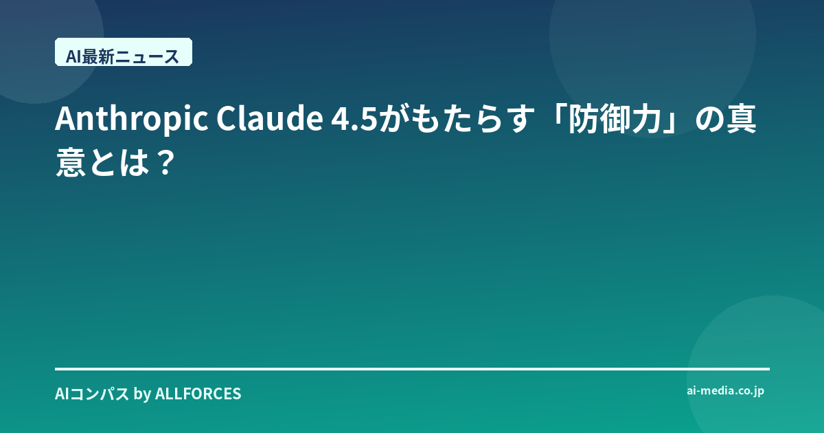 Anthropic Claude 4.5がもたらす「防御力」の真意とは? 皆さん、最近のAI業界の動き、特にAnthropicのClaude 4.5の話題には注目していますか? 私も長年この業界を見てきましたが、正直なところ、最初に「防御力向上」というキーワードを目にした時、少し眉唾ものだと感じたものです。しかし、詳しく調べていくうちに、これは単なるマーケティング用語ではない、より深い意味があることに気づかされました。あなたも同じような感覚を持っているかもしれませんが、今回のClaude 4.5は、単なる機能追加では片付けられない、AIの未来、ひいては私たちの社会の基盤を揺るがす可能性を秘めている、そんな予感がしています。 私たちが20年近くAIの導入を支援してきた中で、技術の進化は常に両刃の剣でした。便利なAIが生まれれば、それを悪用しようとする動きも必ず出てくる。これはもう、世の常と言ってもいいでしょう。特に生成AIが普及し始めてからは、その傾向が顕著です。だからこそ、AIの「安全性」や「防御力」というのは、どんなに性能が上がっても常に最優先されるべき課題だと、私は個人的に強く感じています。Anthropicが今回、この点に真正面から取り組んできたことは、非常に高く評価すべきでしょう。 今回のClaude 4.5、特にSonnet 4.5とOpus 4.5を見てみると、その「防御力」の具体像が明らかになります。まず驚いたのは、その徹底ぶりですよ。彼らは、モデルの能力と適切な安全対策を一致させるためのフレームワークである「AI安全レベル3(ASL-3)保護」の下でSonnet 4.5をリリースしています。これには、化学、生物、放射性物質、核(CBRN)兵器に関連する危険な入力と出力を検出するための「分類器」が搭載されているというから、その危機意識の高さが伺えます。いやはや、AIが兵器開発に悪用される可能性まで視野に入れているとは、正直、想像をはるかに超えていましたね。 そして、エージェント機能やコンピューター使用機能において重大なリスクとなる「プロンプトインジェクション攻撃」に対する防御も大幅に強化されています。これは、AIが自律的に行動する未来を考えると、必須の機能です。また、モデルが追従、欺瞞、権力志向、妄想的思考の助長といった「懸念される行動」を大幅に削減したという点も重要です。これは、単に技術的な防御だけでなく、AIの倫理的な振る舞いをコードレベルで担保しようという強い意志の表れだと私は見ています。Opus 4.5では、トレーニング段階での「強化学習」を含む「多層防御メカニズム」を採用し、セキュリティと脆弱性最小化を両立させています。 ビジネスの側面から見ても、今回の防御力向上は大きな意味を持っています。なぜなら、企業のAI導入において、セキュリティとリスク管理は常に最大の懸念事項だからです。Anthropicは、Microsoftから最大150億ドル、Googleから20億ドル、Amazonから最大40億ドルといった巨額の投資を受けているだけでなく、Microsoftとは300億ドル相当のAzureコンピューティング容量の購入契約も結んでいます。NVIDIAもMicrosoftと共同で150億ドルの投資を検討していると報じられており、ClaudeモデルがNVIDIA AIシステム上で動作していることも忘れてはなりません。これらの巨大企業がAnthropicに投資するのは、彼らの技術力、特に安全性へのコミットメントを評価しているからに他なりません。 さらに興味深いのは、Anthropicが「米国国防総省(DOD)」から軍事AIに関する2億ドルの契約を獲得し、「Claude Gov」という国家安全保障顧客向けのモデルを開発しているという事実です。これは、Anthropicの安全対策が、最も厳格な要件を持つ分野で評価されている証拠と言えるでしょう。HackerOneやCrowdStrikeといったサイバーセキュリティ企業がClaude Sonnet 4.5を脆弱性検出に活用し、その精度と速度向上に貢献しているという話も耳にしました。これは、AI自体がサイバーセキュリティの最前線で「防御の盾」となる未来を示唆しているのではないでしょうか。 技術的な側面では、「メカニスティックインタプリタビリティ」が安全性評価に使われていること、「Claude Agent SDK」が外部開発者がClaudeの計画、行動、および反映方法を定義できるようにしている点も注目です。これにより、セキュリティチームがより安全なエージェントを設計できるようになります。「Extended Thinking」は複雑なコーディング作業のパフォーマンス向上に、「Context Awareness (Haiku 4.5)」は会話全体でのコンテキスト維持に貢献し、「Thought Block Retention (Opus 4.5)」は長期間の対話における推論の連続性を保ちます。「Effort Parameter (Opus 4.5)」は応答に使用するトークン数を制御し、徹底性とトークン効率のバランスを取ることができるという、細かいながらも実用的な進化も見て取れます。そして、Claude Opus 4.5が実際のソフトウェアコーディング能力を測る「SWE-bench Verified」で最先端の結果を出したという報告は、開発者にとっては非常に心強いニュースでしょう。 結局のところ、AnthropicのClaude 4.5が示