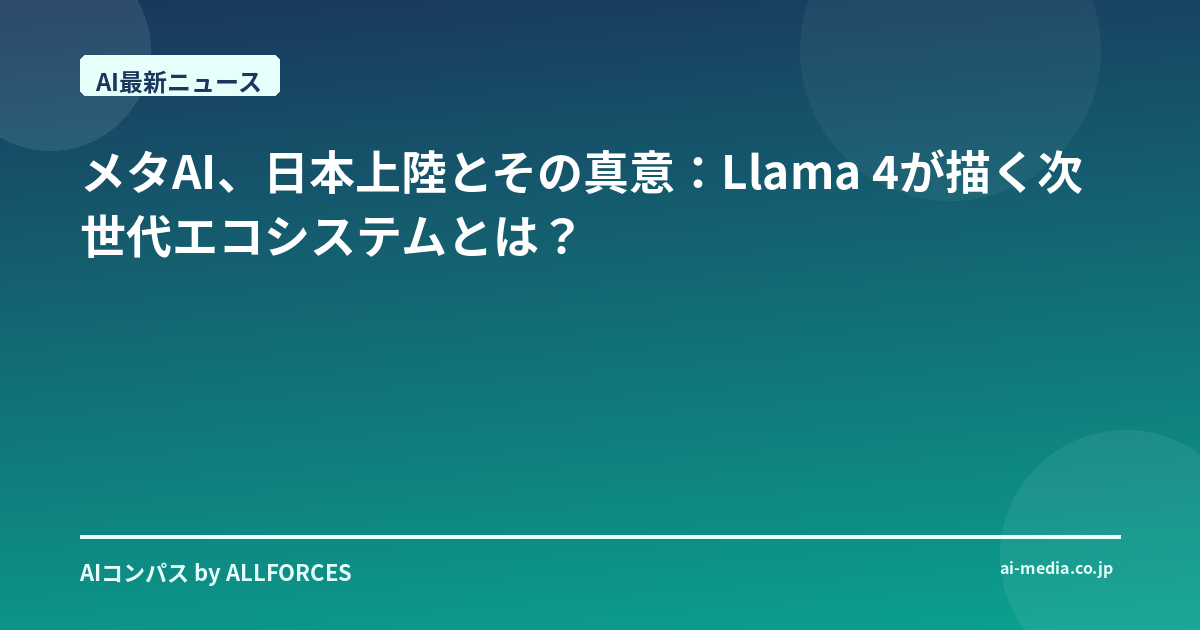 メタAI、日本上陸とその真意:Llama 4が描く次世代エコシステムとは?