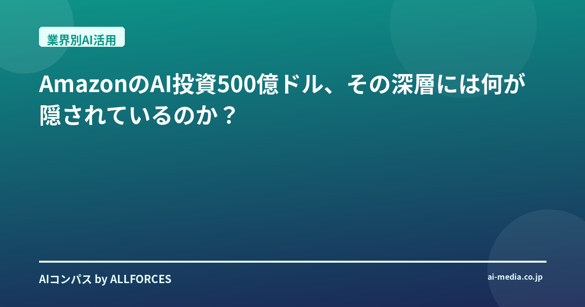 AmazonのAI投資500億ドル、その深層には何が隠されているのか? いやあ、AmazonがAIに500億ドル、つまりざっと7兆8000億円もの巨額を投じるってニュース、あなたも耳にしたんじゃないでしょうか。正直なところ、最初にこの数字を聞いたとき、「また始まったな」と、私なんかは少しばかり懐疑的に構えちゃいましたよ。だって、この20年、シリコンバレーから日本の大企業まで、AI投資の熱狂と、その後の冷めきった現実を何度見てきたことか。でもね、今回はちょっと毛色が違うのかもしれない、そんな予感がするんです。 私のようなオールドタイマーから見ると、AIは常に「未来の技術」であり続けてきました。しかし、ここ数年の生成AIの爆発的な進化は、その未来を一気に現在へと引き寄せた。かつては研究室の奥でひっそりと育っていた技術が、今やビジネスの最前線で具体的な成果を求められるようになった。このAmazonの動きは、単なる投資というより、もはや国家レベルのインフラ構築、いや、AI時代における新たな覇権争いの号砲と捉えるべきでしょう。あなたは、この波の大きさを肌で感じていますか? 今回の発表で特に目を引いたのは、この500億ドルが主に米国の政府機関向けAIおよびスーパーコンピューティング基盤の拡張に向けられる、という点でした。具体的には、AWS Top Secret、AWS Secret、そしてAWS GovCloud (US) といった政府専用のクラウドリージョンに、約1.3ギガワットもの計算能力が追加されるというから、規模感が半端じゃない。これは、単にコンピューティングリソースを提供するだけでなく、国家安全保障、サイバーセキュリティ、医療研究、自律システムといった、国の根幹を支える重要任務をAIで支援するという、極めて戦略的な意図が見て取れます。 Amazonは、この壮大な計画のために、自社が持つAWSの幅広いAIサービスを総動員する構えです。モデルトレーニングを担うAmazon SageMaker、そして各種の基盤モデル(Foundation Model)を統合的に利用できるAmazon Bedrockは、政府機関の多様なニーズに応えるための強力なツールとなるでしょう。個人的には、Amazonが独自に開発している生成AI基盤モデル「Amazon Nova」が、このプロジェクトでどのような進化を遂げるのか、非常に興味を惹かれますね。そして忘れてはならないのが、AIの頭脳ともいえるチップの話です。AWSは、独自設計のTrainiumチップ、特に開発中のTrainium 2やTrainium 3に多大な期待を寄せていると聞きますが、同時にNVIDIAのAIインフラも活用するというのは、現実的かつ堅実なアプローチだと感じます。やはり、NVIDIAの技術力は現状では抜きん出ている。ここを無視しては語れません。 さらに、この投資の背景には、強固なパートナーシップ戦略があります。Amazonが最大40億ドルを投資しているAnthropicのClaudeは、Bedrockを通じて多くの顧客に利用されていますし、Meta、Mistral AI、Stability AIといった多様なオープンソース基盤モデルがBedrock上で利用可能になるのは、選択肢の幅を広げ、特定のベンダーへの依存を避ける上でも重要です。しかし、驚きだったのはOpenAIとの提携ですね。なんと7年間で380億ドル規模の戦略的提携を結び、OpenAIのコアAIワークロードがAWSインフラ上で実行されるという。これはもう、単なるクラウド顧客という関係を超えて、AIエコシステム全体の勢力図を塗り替えるような動きだと見ています。OracleやSoftBankが「Stargate」プロジェクトでAIインフラ競争を激化させている現状を考えると、Amazonもまた、このAI戦争の最前線で全方位的な戦略を仕掛けている、ということなのでしょう。 では、この動きは私たち投資家や技術者にとって何を意味するのでしょうか。まず、AWSの政府機関向けビジネスは今後も堅調に伸びるでしょうから、関連するクラウドインフラ企業や、政府・公共部門向けのAIソリューションを提供するスタートアップにはチャンスが広がります。また、Amazon自身が開発するカスタムAIチップ「Trainium」の性能向上は、NVIDIA一強の市場に風穴を開ける可能性も秘めています。これは、半導体業界の競争構造に大きな影響を与えるかもしれませんね。技術者としては、AWSの政府専用クラウド環境におけるAI開発のベストプラクティスや、Bedrock上での多様な基盤モデルの活用法を習得することが、今後のキャリアパスにおいてますます重要になるはずです。特に、サイバーセキュリティや自律システムといった高度な専門知識が求められる分野では、AIとドメイン知識を融合できる人材の価値は天井知らずになるでしょう。 正直なところ、この500億ドルが本当にすべて実を結ぶのか、政府機関特有の導入障壁やセキュリティ問題、倫理的な課題をどうクリアしていくのか、まだまだ不透明な部分は残されています。過去の経験から言えば、大規模投資の全てが成功するわけではないのが常です。しかし、AIが国家戦略の中核を占めるようになった今、Amazonのような巨大企業が本腰を入れたことは、疑いようのない事実。あなたは、この