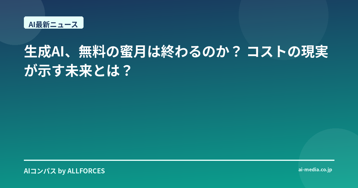生成AI、無料の蜜月は終わるのか? コストの現実が示す未来とは?
