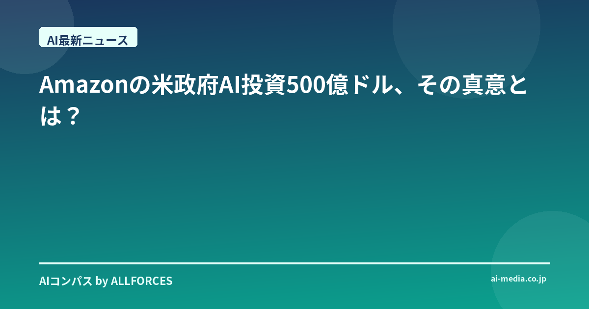 この500億ドルの投資は、Amazonの強固なクラウドインフラとAI技術力が、国家戦略レベルで活用される新たな時代の幕開けを告げています。しかし、その先に本当に「米国がAI時代をリードする」という未来が待っているのか、あるいは新たな課題を生み出すのかは、これからの技術開発と運用のあり方にかかっています。あなたなら、このAmazonの巨大な一手に、何を期待し、何を懸念しますか?