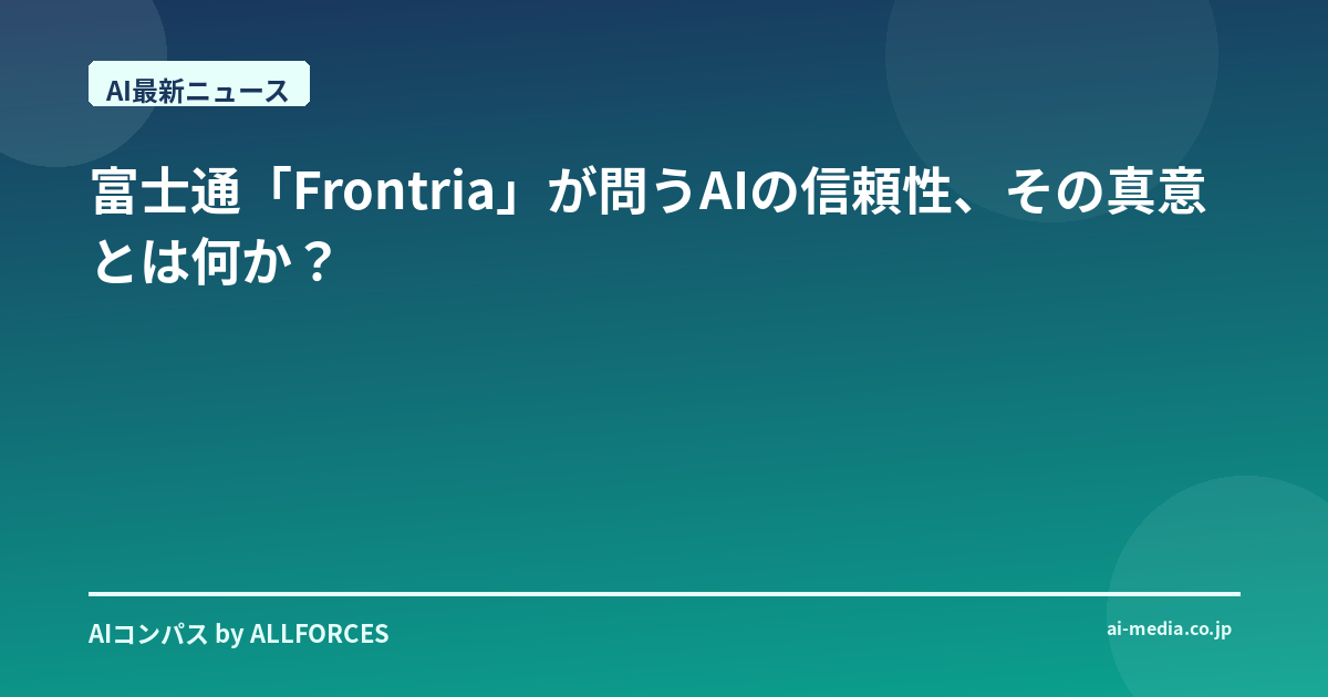 正直なところ、これまでAIのフロンティアは、シリコンバレーや中国が牽引してきた感がありました。しかし、今回のFrontriaの立ち上げは、日本企業がAIの「責任と倫理」という、最も根源的な課題においてリーダーシップを発揮しようとしている明確な意思表示です。