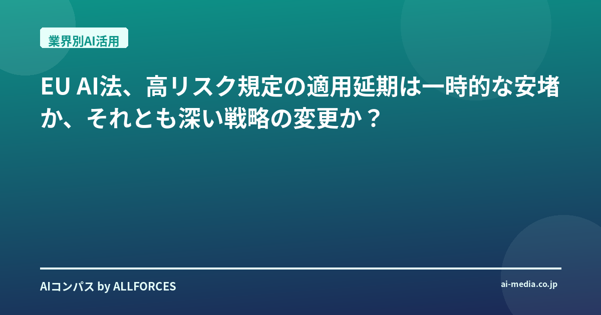EU AI法、高リスク規定の適用延期は一時的な安堵か、それとも深い戦略の変更か?