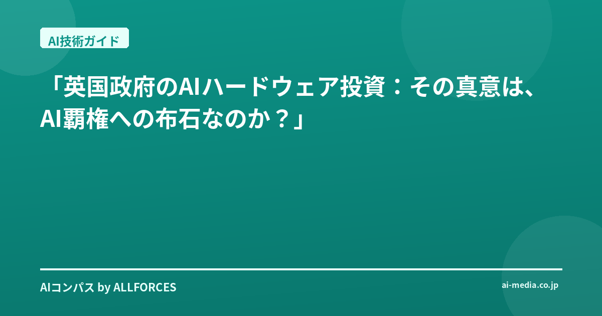 「英国政府のAIハードウェア投資:その真意は、AI覇権への布石なのか?」