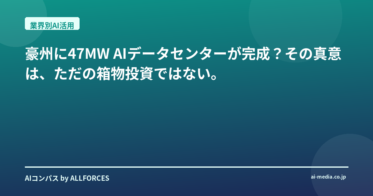 豪州に47MW AIデータセンターが完成?その真意は、ただの箱物投資ではない。