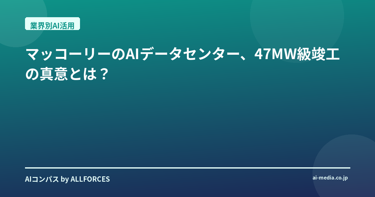 マッコーリーのAIデータセンター、47MW級竣工の真意とは?