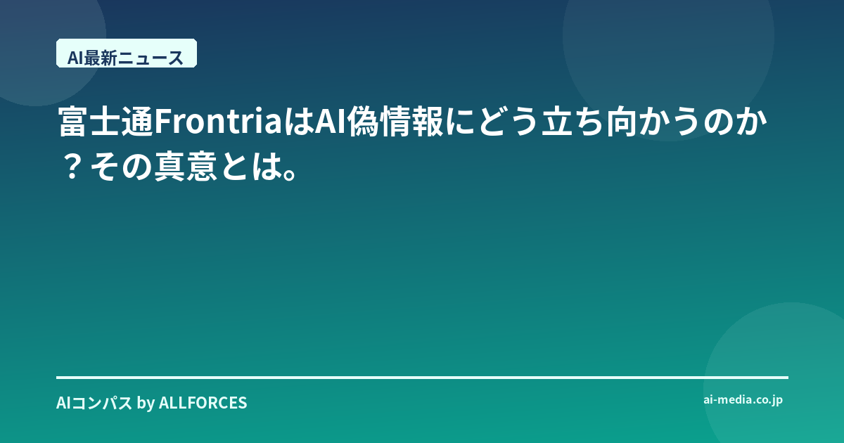 私たちは今、AIが社会の根幹を揺るがしかねない時代に生きています。情報の信頼性が失われれば、民主主義の基盤が揺らぎ、経済活動にも深刻な影響が出かねません。Frontriaのような取り組みは、この巨大な課題に立ち向かうための重要な一歩であり、富士通がその先頭に立つことは、日本企業としての存在意義を世界に示す機会でもあります。