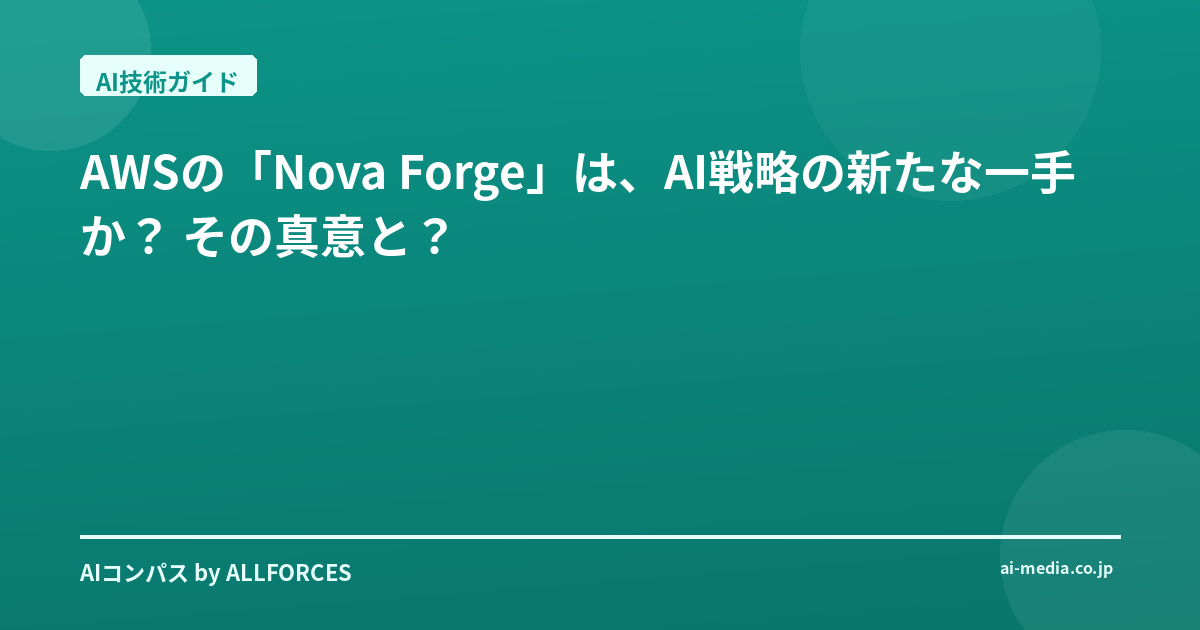 皆さん、こんにちは! 長年この業界を渡り歩いてきた私から見ても、今回のAWSの「Nova Forge」発表は、ちょっと目を引くものでしたね。正直なところ、最初聞いた時は「また新しいAIサービスか」と、少々斜に構えてしまったんですが、その詳細を聞くにつれて、これは単なる新製品の投入に留まらない、AWSの深い戦略が見え隠れするなと感じています。あなたもそう感じていませんか?