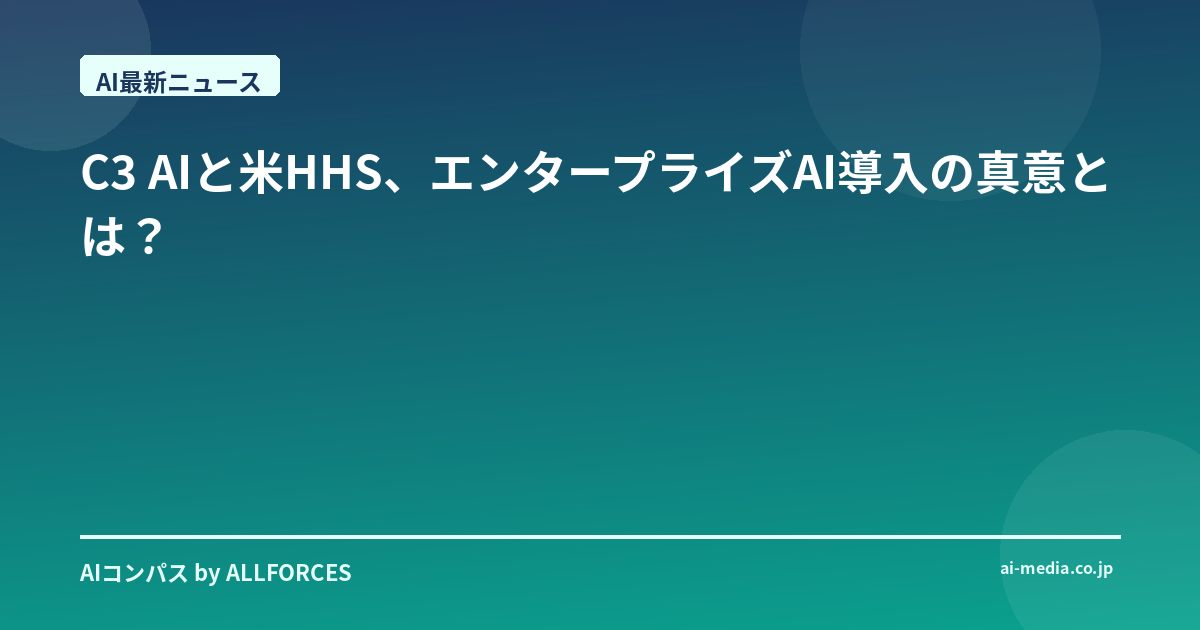 C3 AIが米国の保健福祉省(HHS)にエンタープライズAIを導入するというニュースを聞いて、正直なところ、最初に私の頭に浮かんだのは「またか」という思いでした。あなたも感じているかもしれませんが、政府機関への大規模なテクノロジー導入は、期待と同時に、過去の苦い経験がよぎるものです。しかし、今回は少しばかり違う匂いがする。一体何が変わるのでしょうか?