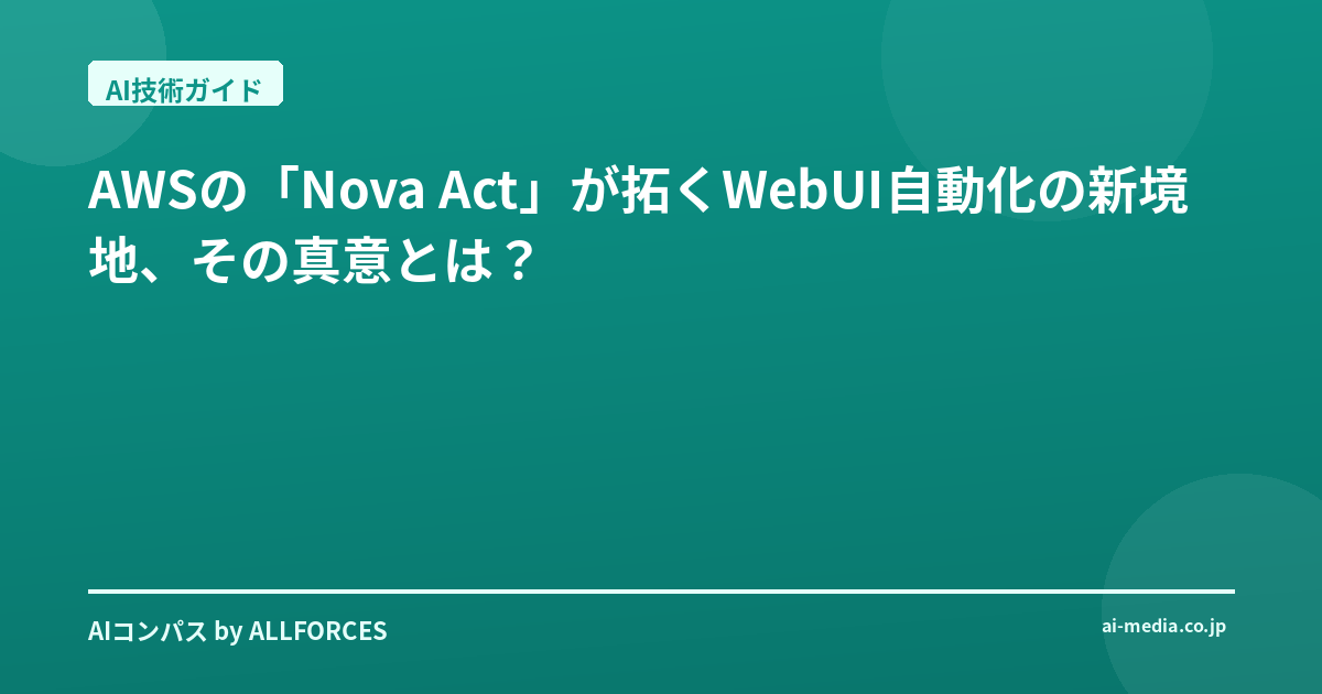 AWSの「Nova Act」が拓くWebUI自動化の新境地、その真意とは?