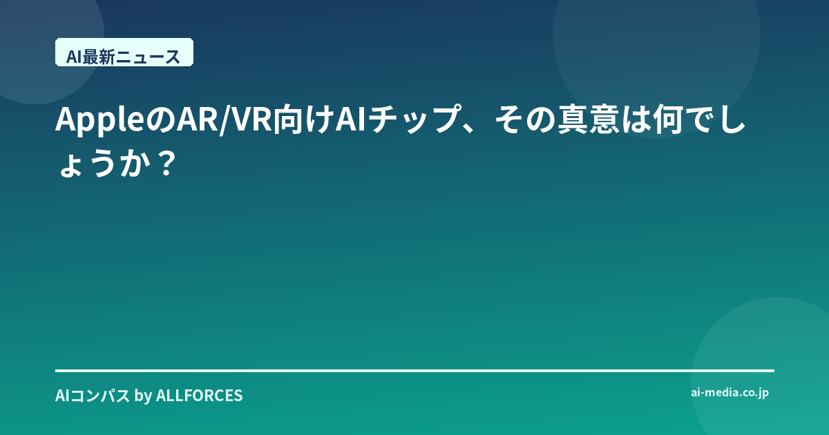 さあ、あなたはどう感じますか?AppleのAR/VR向けAIチップ投入は、単なる新製品発表に留まらず、私たちのデジタルライフを根本から変える可能性を秘めている。あなたも、この変化の波にどう乗っていくのか、考えてみる価値はあるのではないでしょうか。
