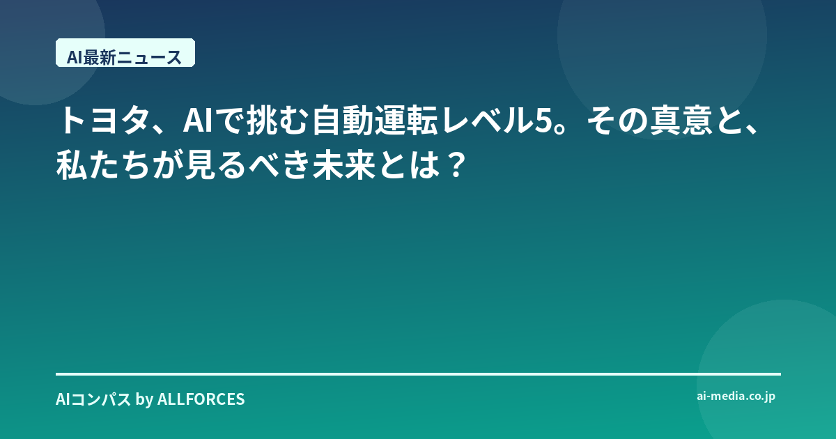 トヨタ、AIで挑む自動運転レベル5。その真意と、私たちが見るべき未来とは?