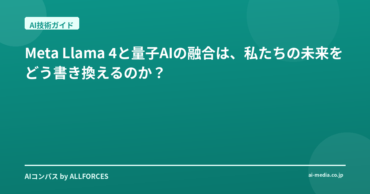 でもね、今回は少し違う。Meta、あのMetaが、Llama 4という次世代の基盤モデルに「量子AI」という旗を立てた。これはただの掛け声じゃない、何か大きな動きの予兆だと、私の長年の勘が囁いているんです。一体、何がそうさせるのか。そして、この融合は本当に私たちの想像を超える未来をもたらすのか。今日はその辺りを一緒に深掘りしていきましょうか。