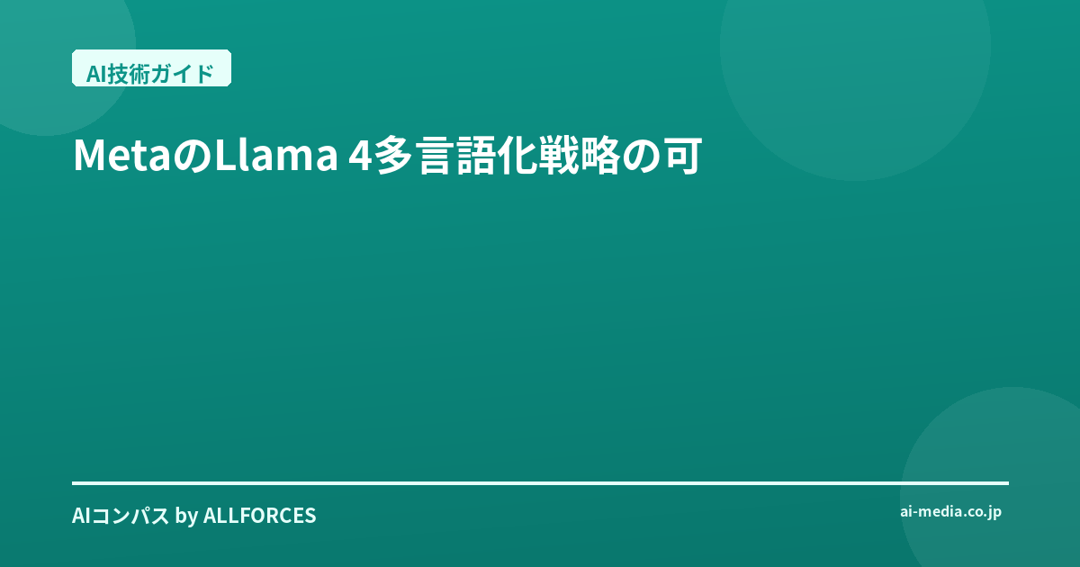 - 特定地域/言語に特化したAI企業: Llama 4を基盤としつつ、特定の低リソース言語や文化圏に特化したファインチューニングや、専門知識を付加価値として提供する企業も注目に値する。彼らは、グローバルAIの波に乗りつつ、ニッチな市場で深い価値を提供できるはずだ。