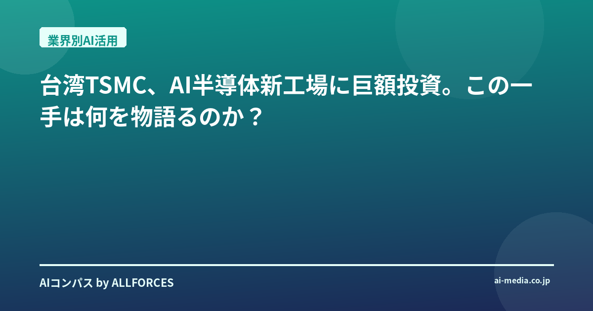 【既存の記事の最後の部分】 台湾TSMC、AI半導体新工場に巨額投資。この一手は何を物語るのか? 「またか!」正直なところ、僕は最初にそう思ったんだ。台湾積体電路製造(TSMC)がまた新工場を建てるというニュースを聞いてね。この20年間、シリコンバレーのスタートアップから日本の大企業まで、文字通り数百社のAI導入を間近で見てきたけれど、TSMCの動向は常に業界の羅針盤だった。彼らが動けば、世界の半導体サプライチェーン全体がざわめく。 でもね、今回はちょっと違うな、とすぐに感じたんだ。記事の見出しに「AI半導体」という枕詞がつく。これ、あなたも感じているかもしれませんが、単なる増産の話じゃないですよね?もっと深くて、これからのAIの進化を左右するような、根源的な変化の予兆がそこにはあるんじゃないかと。 TSMCが世界の「心臓」たる所以を、もう一度 ご存知の通り、TSMCは世界の半導体受託製造(ファウンドリ)の巨人だ。彼らがいなければ、今のNVIDIAもAppleもQualcommも、そしてGoogleやAmazonといった巨大テック企業も、望むような性能のチップを手に入れることはできない。かつてはIntelが半導体業界の絶対王者だったが、約20年前、TSMCが特定の企業に縛られない「純粋なファウンドリ」というビジネスモデルを確立して以来、彼らは文字通り世界のテクノロジーの「心臓」であり続けている。 僕がかつて見た、あるシリコンバレーのAIスタートアップが、独自のAIチップを設計したはいいものの、製造委託先が見つからず、事業が頓挫しかけたことがあった。その時、彼らが最後に頼ったのがTSMCだったんだ。どんなに優れたアイデアも、どんなに革新的なアーキテクチャも、実際にチップとして形にならなければ意味がない。TSMCは、その「形にする」最後の砦なんだ。 特に最近のAIブーム、ChatGPTのような生成AIの登場で、この流れは決定的になった。NVIDIAのH100 GPUが品薄になり、価格が高騰した時のあの焦燥感を、僕たちは鮮明に覚えているはずだ。あの時、AIの進化はハードウェアの供給能力に強く依存していることを、改めて痛感させられた。 ただの増産ではない、AI半導体の「本質」を捉える一手 今回のTSMCの新工場建設、詳細を見ていくと、その真意が透けて見える。報道されているのは、主に台湾国内、特に既存の南部科学園区(台南)や台中といった拠点での拡張、あるいは新たな用地取得による建設だ。そして、ここで重要なのが、単なる微細化プロセス(3nmや2nmといった先端ロジック)の増強だけではない、ということ。 キーワードは「アドバンストパッケージング」、特にCoWoS (Chip on Wafer on Substrate) 技術の能力増強だ。 「CoWoSって何?」と思う人もいるかもしれないね。簡単に言うと、これは複数のチップをまるでブロックのように積み重ねたり、横に並べたりして、超高速で接続する技術なんだ。従来の半導体は、CPUやGPUといった主要なチップを、プリント基板に1つずつ貼り付けていた。でも、AIチップ、特にNVIDIAのH100や、さらにその進化版であるGH200 Grace Hopper Superchipのようなものは、単一の巨大なチップだけでは性能が足りなくなっている。 想像してみてほしい。AIが膨大なデータを処理するためには、CPUやGPU(あるいは専用のAIアクセラレータであるASIC)だけでなく、そのデータを一時的に記憶しておく超高速メモリ(HBM: High Bandwidth Memory)が不可欠だ。これらの異なる役割を持つチップを、いかに物理的に近く、そしていかに高速に接続できるか。それがAIチップ全体の性能を決定づけるんだ。 CoWoSは、この課題に対するTSMCの答えだ。複数のチップレット(小さな機能ブロックに分かれたチップ)を、シリコンインターポーザーと呼ばれる仲介基板の上に配置し、それをさらにパッケージングするという、まるで立体パズルのような技術なんだ。これにより、チップ間の信号伝送距離が劇的に短縮され、電力効率が向上し、そして何よりもデータ転送速度が飛躍的に高まる。NVIDIAがH100やGH200で驚異的な性能を発揮できているのは、このCoWoS技術の恩恵が非常に大きい。 このトレンドは、半導体業界の構造変化を示している。これまでは、いかに微細な線幅(例: 7nmから5nm、そして3nm、2nmへと)で回路を形成するかが性能競争の主戦場だった。それは今も重要だが、物理的な微細化はそろそろ限界に近づいている。そこで次のフロンティアとして注目されているのが、この「パッケージング技術」なんだ。IntelのFoverosやSamsungのI-Cubeといった競合技術も出てきているが、TSMCのCoWoSは現時点でのデファクトスタンダードと言えるだろう。TSMCはさらにSoIC (System on Integrated Chips) といった、チップレットを直接積み重ねるさらなる先進技術も開発しており、未来を見据えている。 投資の規模と、その裏にある顧客のプレッシャー 今回の新工場建設に伴う投資額は、数百億ドル規模に達すると見られている。想像を絶する金額だよね。これには、オランダのASMLが製造する最新鋭のEUV(極端紫外線)露光装置のような、