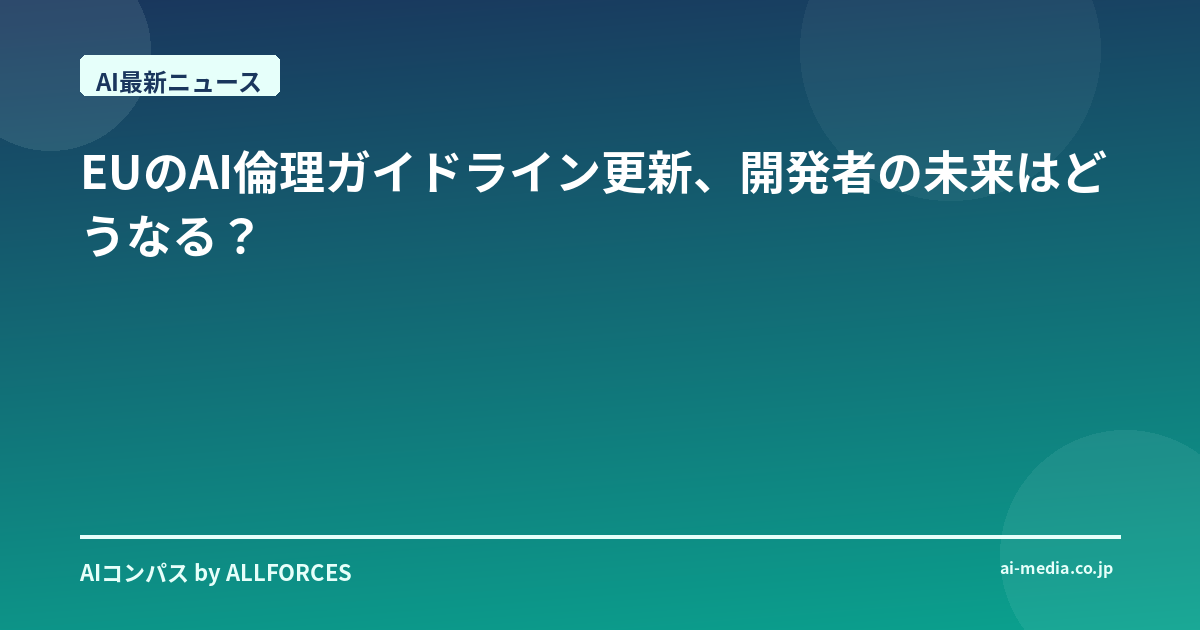 私たちが20年間見てきたAIの歴史は、常に技術革新と、それに伴う社会的な課題との格闘の連続でした。今回、EUが示した倫理ガイドラインは、その格闘の新たなフェーズへの幕開けと言えるのかもしれません。このガイドラインが、開発者、企業、そして私たち一人ひとりが、AIとどう向き合っていくべきか、改めて考えるきっかけとなることを願っています。皆さんは、このEUのAI倫理ガイドラインの更新について、どのような未来が待っていると思いますか? ぜひ、皆さんのご意見も聞かせてください。