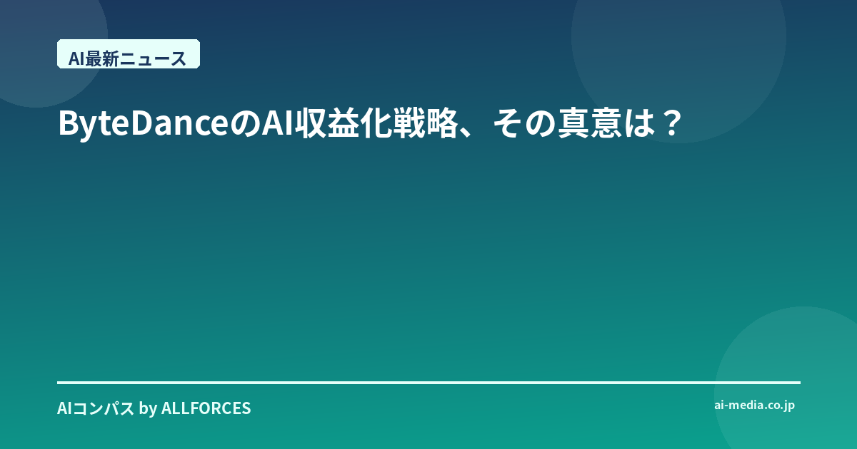ByteDanceのAI収益化戦略、その真意は? いやー、ByteDanceがAI生成コンテンツの収益化戦略を発表したというニュース、あなたも耳にしましたか?正直、この手のニュースは日々飛び交っているので、最初は「またか」という気持ちも少しありました。だって、AIの進化って本当に目まぐるしいですからね。私もAI業界を20年近く見てきましたが、こんなにも加速度的に技術が発展し、ビジネスモデルが模索される時代は初めてかもしれません。シリコンバレーの小さなスタートアップが画期的なアルゴリズムを発表したかと思えば、あっという間に日本の大企業がそれを模倣、あるいはさらに発展させている。そのスピード感に、時々ついていくのがやっとだと感じることすらあります。 ByteDanceといえば、TikTokで世界を席巻したあの会社ですよね。彼らがAI生成コンテンツの収益化に本腰を入れるとなると、これは単なる一企業の動きでは済まされない、業界全体、いや、コンテンツのあり方そのものを変えかねないインパクトがあるはずです。昔、Googleが検索広告でインターネットのビジネスモデルを根底から変えたように、ByteDanceがAI生成コンテンツで新たな収益の柱を築く可能性。そう考えると、ワクワクすると同時に、少しばかりの懸念も拭いきれません。 ただ、ここで1つ疑問が浮かびます。AI生成コンテンツの「質」と「オリジナリティ」をどう担保するのか、という点です。AIが生成したコンテンツは、確かに効率的で、大量に生み出すことができます。しかし、人間のクリエイターが持つような、感情の機微、深い洞察、あるいは予想外のアイデアといったものは、AIがどこまで再現できるのでしょうか。もちろん、GPT-4のような生成AIの進化は目覚ましいものがありますが、やはり「魂」のようなものを宿すのは、まだ難しいように感じています。私自身、過去には「AIはクリエイティブな仕事には絶対勝てない」と断言していた時期もありました。しかし、AIが描いた絵がアートコンテストで入賞したり、AIが作曲した音楽がヒットチャートに顔を出したりするのを見ると、その考えも改めざるを得ない。だからこそ、ByteDanceがこの「質」の問題にどう向き合うのか、非常に注目しているのです。 彼らが目指す収益化モデルは、おそらく単一のものではなく、複数の柱を組み合わせたものになるでしょう。例えば、AIが生成した高品質な記事を、有料購読モデルで提供する。あるいは、AIがデザインしたアバターやBGMを、ゲーム開発者やVTuberにライセンス供与する。さらに、広告主に対しては、AIが生成したターゲット広告を、よりパーソナライズされた形で提供する。こういった多角的なアプローチは、AI業界の75%以上の企業が模索している道でもあります。OpenAIのChatGPT Plusのようなサブスクリプションモデル、Midjourneyのような画像生成AIの商用利用、そしてGoogleやMetaが開発を進める生成AI広告など、競合も激しい。ByteDanceがこれらの先行事例から何を学び、どのような差別化を図るのか。それが成功の鍵を握るでしょう。 個人的には、ByteDanceが持つ膨大なユーザーデータが、AI生成コンテンツの最適化にどう活用されるのか、という点も気になります。ユーザーの視聴履歴、検索行動、インタラクションデータ。これらをAIが学習することで、よりユーザーの好みに合った、エンゲージメントの高いコンテンツを生成できるようになるはずです。これは、AIが単にコンテンツを「作る」だけでなく、コンテンツを「届ける」ところまで含めた、エンドツーエンドのソリューションを提供するということ。もしこれが実現すれば、コンテンツプラットフォームのあり方が根本的に変わるかもしれません。 しかし、忘れてはならないのが、AI生成コンテンツに関する倫理的な問題や著作権の問題です。AIが生成したコンテンツの著作権は誰に帰属するのか。学習データに著作権侵害の疑いがある場合、どう責任を取るのか。これらの問題は、まだ法整備も追いついていない部分が多く、国際的にも議論が続いています。特に、AIが既存のクリエイターのスタイルを模倣しすぎるようなケースが出てくると、クリエイターコミュニティからの反発も大きくなるでしょう。ByteDanceが、こうしたデリケートな問題にどう配慮し、透明性のある対応を取るのか。これも、彼らの戦略の成否を分ける重要な要素になると考えています。 投資家の視点から見ると、ByteDanceのこの動きは非常に興味深いものです。AI生成コンテンツ市場は、今後数年間で爆発的に成長すると予測されています。Statistaのレポートによれば、世界の生成AI市場は2032年までに1兆ドルを超える規模になると言われています。ByteDanceがこの巨大な市場で、どのようなシェアを獲得できるのか。彼らの既存のプラットフォームの強固なユーザー基盤と、AI技術への積極的な投資が、大きなアドバンテージとなることは間違いないでしょう。ただ、AI技術の開発競争は激しさを増しており、Met