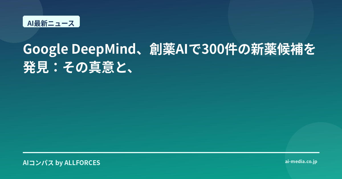 「Google DeepMindが創薬AIで300件もの新薬候補を発見したって、あなたもニュースで見たんじゃないかな?」