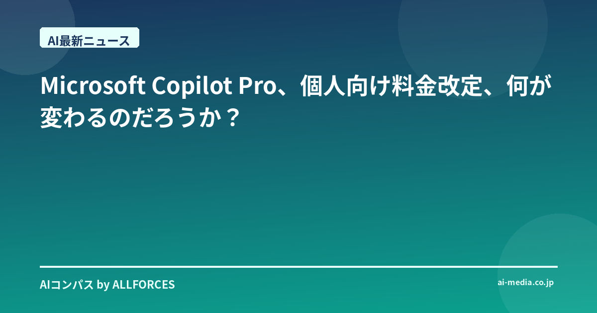 いやー、ついに来ましたね、Microsoft Copilot Proの個人向け料金改定。あなたもきっと、ニュースで目にして「おや?」と思ったんじゃないでしょうか。私も第一时间にこの情報をキャッチして、正直、ちょっと驚いています。AI業界を20年近く見てきて、数えきれないほどの技術の波、ビジネスモデルの変遷を見てきましたが、今回のCopilot Proの動きは、その中でもなかなか興味深い部類に入ると感じています。