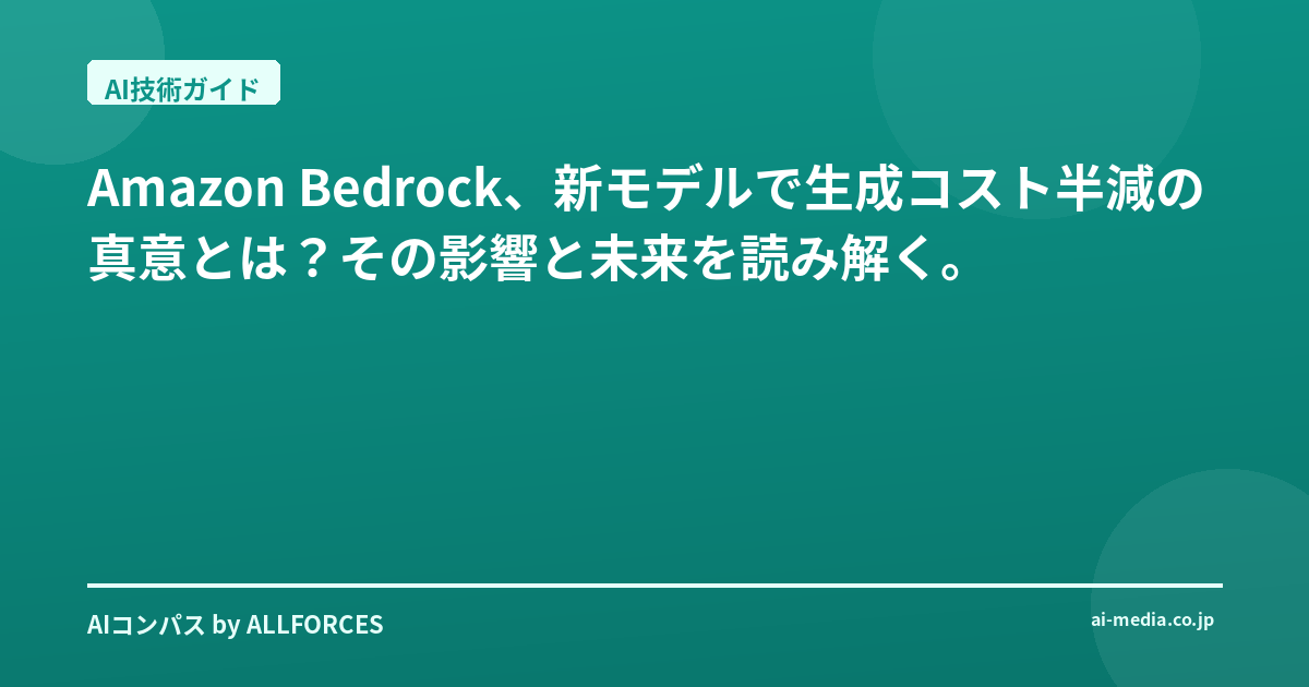 Amazon Bedrock、新モデルで生成コスト半減の真意とは?その影響と未来を読み解く。