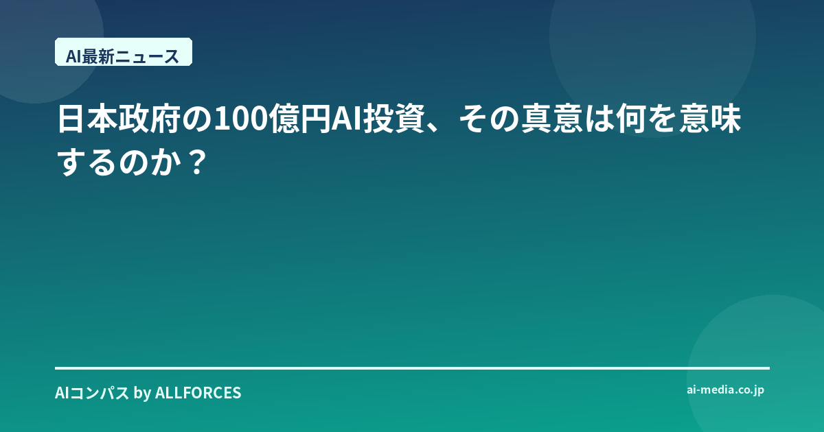 もちろん、100億円という予算が、すべてにおいて「完璧」な成果を生み出すとは限りません。AI研究開発の道のりは、常に不確実性に満ちています。しかし、重要なのは、政府がこの分野に本気で投資するという意思表示をしたこと、そして、その意思表示が、業界全体に活気をもたらすきっかけになるということです。私自身、20年間AI業界を見てきて、技術の進化というのは、時に予想もしない方向からやってくるものです。だからこそ、この100億円という投資が、未来の日本を形作る、新たなAI技術の種となることを、切に願っています。