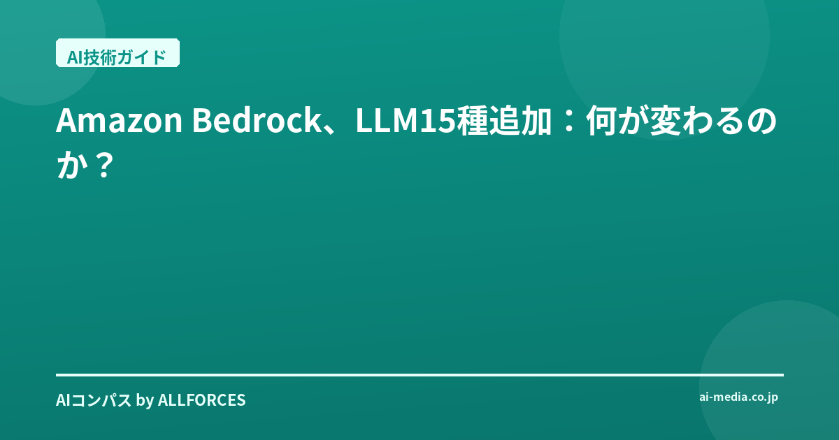 ねえ、君もこのニュース、もうチェックしたかな?Amazon Bedrockが、なんと15種類もの新しいLLM(大規模言語モデル)を追加したっていう話。正直、最初見たときは「またか」とも思ったんだけど、20年間この業界をウォッチしてきた身としては、ただの「追加」で片付けるわけにはいかないんだよね。だって、これは単なるラインナップの拡充じゃなくて、AI、特に生成AIの風景を、静かに、でも確実に変えていく可能性を秘めているから。
