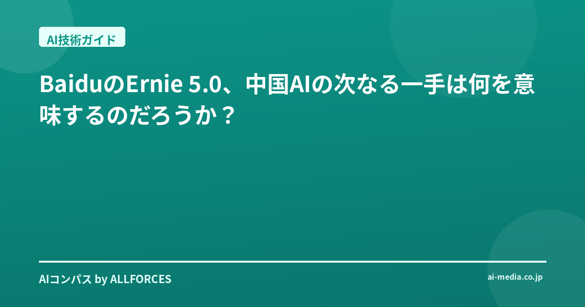 これから、Ernie 5.0の具体的な性能評価や、実際の応用事例が次々と出てくるだろう。その情報を、冷静に、そして批判的に吟味していくことが重要だ。AIの進化は、期待と同時に、常にリスクも伴う。BaiduのErnie 5.0が、このAIの歴史にどのような一ページを刻むのか、注視していく必要がある。