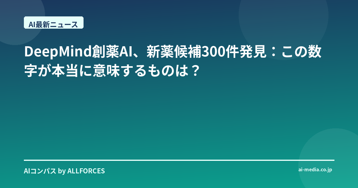 「おいおい、またか!」って正直、最初はそう思ったんですよ。DeepMindが創薬AIで新薬候補を300件も発見したってニュースが流れてきた時、あなたはどう感じましたか?「すごい!」ってシンプルに感動しました?それとも、「またバズワードか」ってちょっと斜に構えました?