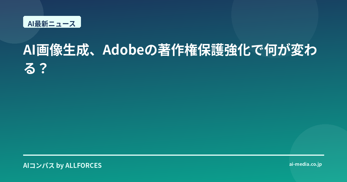 いやー、このニュース、あなたも目にしたんじゃないですか?AdobeがAI画像生成ソフトに著作権保護機能を強化したって話。正直、最初は「またか」って思ったんですよね。AIの進化って、本当に目まぐるしいけど、その度に「これ、大丈夫なの?」って、ちょっと懐疑的になっちゃう自分がいるんです。だって、AIが作り出す画像があまりにもリアルで、もう何が現実で何が作り物なのか、区別がつかなくなってきているじゃないですか。