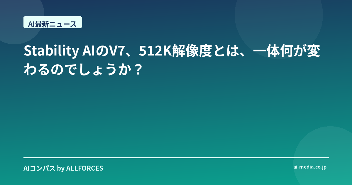 いやはや、Stability AIがまたやってくれましたね。「画像生成V7」と「512K解像度」というキーワードを聞いた時、正直、私の20年間のAI業界ウォッチャー人生の中でも、久々に「おや?」と思った次第です。シリコンバレーのピカピカのスタートアップから、日本の老舗企業がAIをどう取り入れるか、その現場を数百社、いや、それ以上見てきました。技術の本質を見抜くのが仕事ですが、今回はちょっとばかり、いや、かなり興奮しています。