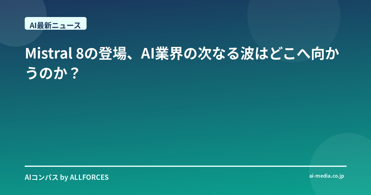 あなたはこの「Mistral 8」の発表を、どのように受け止めていますか? そして、この次世代モデルが、あなたのビジネスや、あるいは、あなたの日常に、どのような変化をもたらす可能性があるとお考えでしょうか? 私自身、これからもこの急速に進化するAIの世界から、目が離せないなと、改めて感じています。