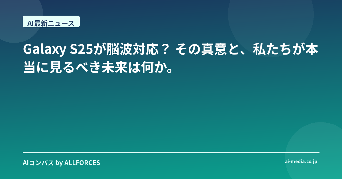 Galaxy S25が脳波対応? その真意と、私たちが本当に見るべき未来は何か。 「Samsung Galaxy AI、次世代S25で脳波対応」──このニュースが飛び込んできた時、正直、私の中のベテランアナリストのセンサーがピクリと反応しましたね。「またか」と、少し身構えたのが最初の正直な感想です。あなたも感じているかもしれませんが、脳波インターフェース(BCI: Brain-Computer Interface)の話題は、これまで何度もバズワードのように浮上しては、いつの間にか鳴りを潜めてきましたから。 でもね、今回は少し違う。そう、今回は「Samsung」という、まさにグローバルなデバイスメーカーの巨頭が、彼らのフラッグシップモデル「Galaxy S25」という、コンシューマー市場の最前線で「Galaxy AI」という文脈で語っている。これは、単なる研究室レベルの実験発表とは一線を画します。20年間AI業界の変遷を肌で感じてきた私としては、ここには何か本質的な変化の兆しが隠されているのではないか、と直感したんです。 過去の「夢」とAIがもたらす「現実味」 私がこの業界に入ってまだ日が浅かった頃、2000年代初頭にもBCIは「次世代のインターフェース」として熱く語られました。当時のスタートアップたちは、ヘッドセット型の脳波センサーを開発し、ゲーム操作やシンプルなコマンド入力に挑戦していましたね。投資家も技術者も、誰もが「思考でデバイスを動かす」という夢に胸を躍らせましたが、結果は散々でした。精度は低く、遅延は大きく、何より日常生活で装着するにはあまりにも不格好で、バッテリーも持たない。個人的にも、当時いくつかのBCIスタートアップへの投資を検討したことがありますが、技術の本質的な課題が解決されていないと判断し、結局見送った経験があります。あの頃の「ブーム」は、まさに「幻滅期」へと向かう典型的なハイプサイクルでした。 では、なぜ今、Samsungがこの難しいテーマに再び挑むのでしょうか? その答えの鍵は、「AI」の劇的な進化、特にエッジAIとマルチモーダルAI、そして大規模言語モデル(LLM)にあると見ています。 従来のBCIは、脳波という極めてノイズの多い信号から、特定のパターンを抽出する「信号処理」と「パターン認識」が主な課題でした。しかし、今のAIは、単なるパターン認識を超え、文脈を理解し、ユーザーの潜在的な意図を推測する能力を飛躍的に向上させています。例えば、あなたが「疲れた」と感じている時に脳波データが特定のパターンを示し、同時にスマートフォンの加速度センサーが座っている状態を検知し、スマートウォッチの心拍数データが上昇傾向にあるといった、複数の情報を統合的に判断する。これこそが、現在の「Galaxy AI」の中核をなすセンサーフュージョンとコンテキスト理解の真骨頂です。 S25と脳波対応の「現実的な」シナリオ SamsungがS25で脳波対応を謳うとして、いきなり「思考でメッセージを送信」といったSFのような機能が実現するとは、正直、考えにくいです。しかし、もっと現実的で、かつインパクトのあるユースケースはいくつか想像できます。 まず1つは、「ヘルスケアとウェルネス」分野での応用でしょう。Samsungは「Samsung Health」を通じて、ユーザーの健康データ収集に力を入れています。脳波データをここに統合することで、ストレスレベルのリアルタイム検知、集中力やメンタル状態のモニタリング、さらには睡眠の質の詳細な分析などが可能になります。例えば、あなたが集中力を欠いている時に、デバイスがそれを検知し、軽いニューロフィードバックを提案したり、休憩を促したりする。あるいは、睡眠中に不穏な脳波パターンが検知された場合、それに基づいてアラームのタイミングを調整したり、専門家への相談を促したりする。これは、Apple Watchが心電図機能で健康管理市場に革新をもたらしたように、Galaxyも同様のアプローチを狙っている可能性が高いです。 次に、「アクセシビリティ」の向上。これは、私たちが最もポジティブに評価すべき点かもしれません。筋萎縮性側索硬化症(ALS)などで体の