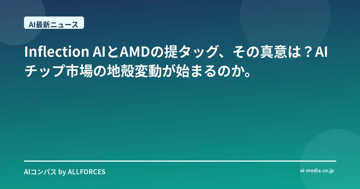 おや、これは面白いニュースが出てきたね。Inflection AIとAMDが次世代AIチップ開発で提携、という一報。君もこのニュースを見て、ふと立ち止まったんじゃないかな?正直なところ、個人的には最初は「また提携か」と斜に構えてしまったんだ。この業界で20年も見ていると、鳴り物入りで始まった提携が、蓋を開けてみれば単なる販売促進だったり、あるいは途中で立ち消えになったりするのを山ほど見てきたからね。