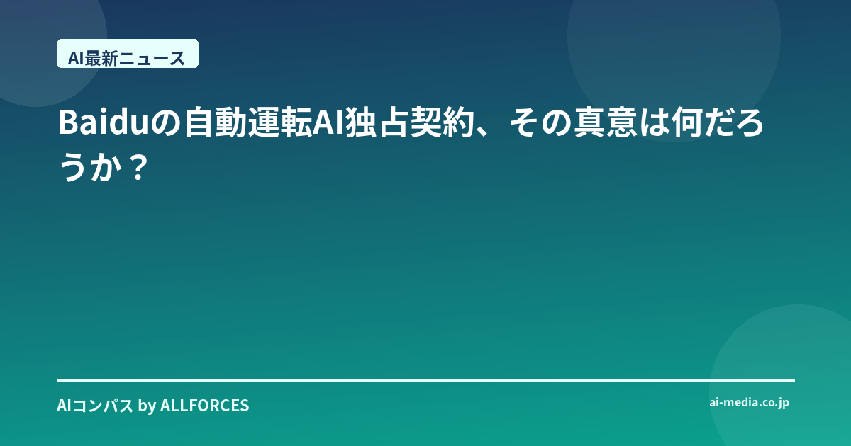 ねえ、君もこのニュース、耳にした? 中国のBaiduが自動運転AIで独占契約を結んだっていう話。正直、最初は「またBaiduか」って思ったんだ。彼らはこの分野でずっと前から積極的に動いてきたし、Apolloプラットフォームも有名だよね。でも、今回の「独占契約」って言葉には、ちょっと引っかかったんだ。これって、一体どういう意味なんだろう?
